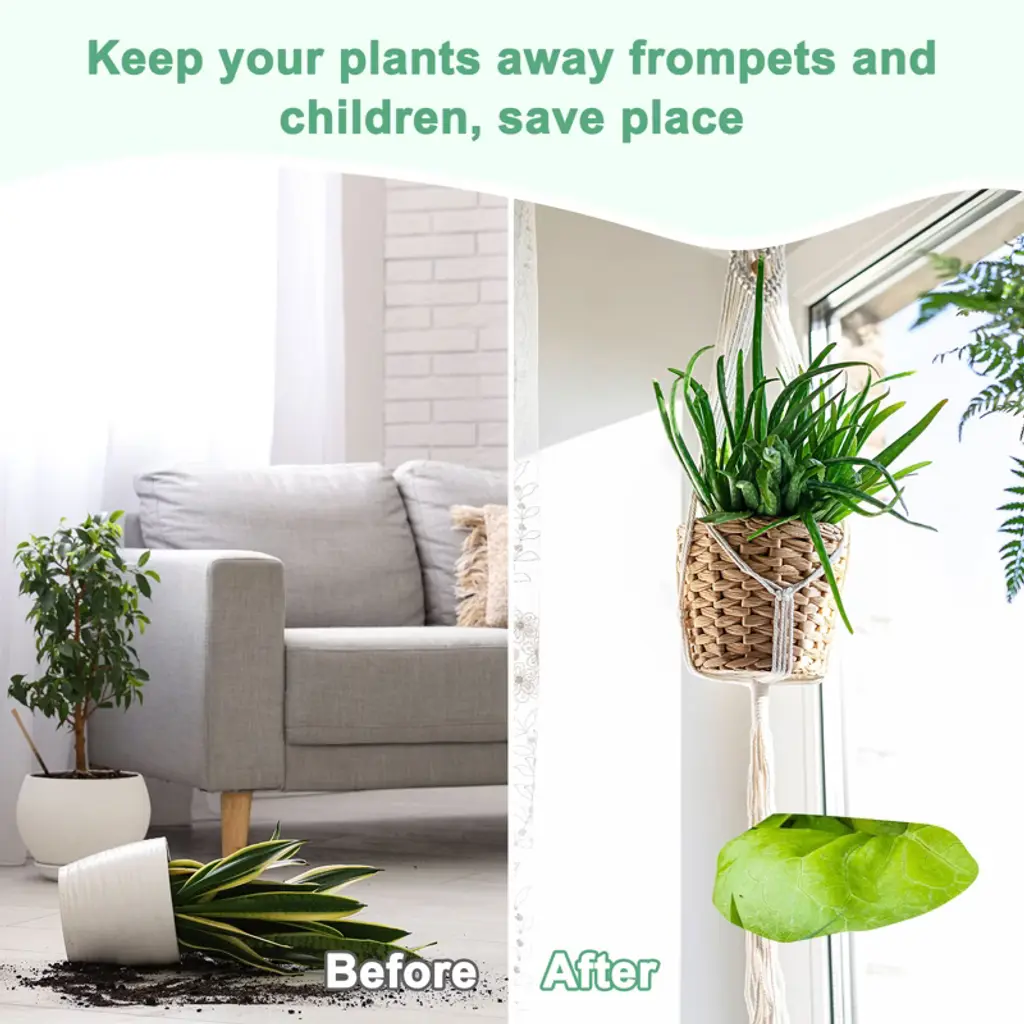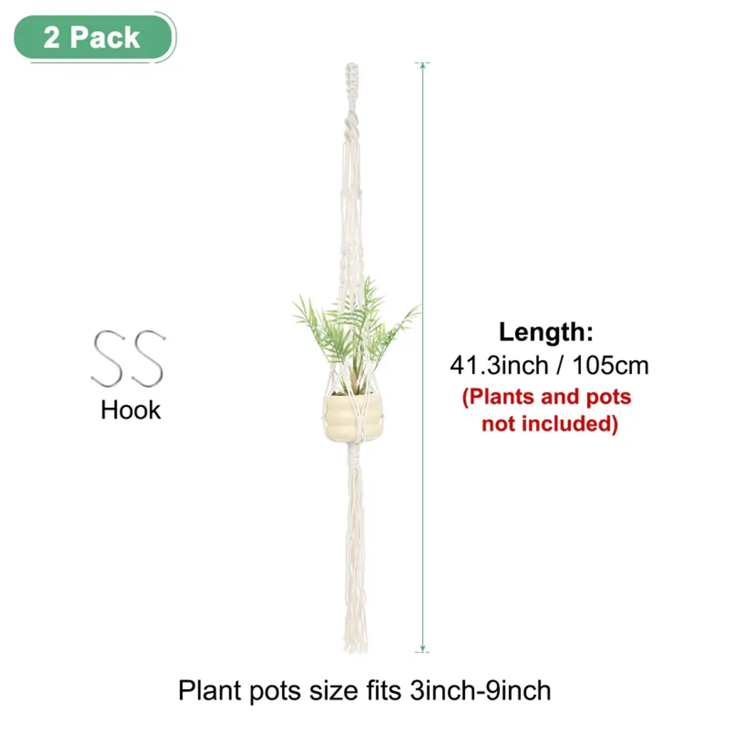 The hanging plant holders have various applications. They can be used indoors and outdoors, such as on a balcony, window, garden, kitchen, hallway, or ceiling. They suit boho home ceiling decor, fake hanging plants, and other living plants. Macrame Hanging Planters are made of recycled cotton rope and a metal ring, which is light and breathable, washable, strong, durable, and unlikely to break. Multiple strands of pure cotton thread keep the top knot from loosening and give the pot strong support. This hand-woven plant hanger has a beautiful woven pattern that protects your pots well. It is suitable for pots in round, square, and other shapes (plants and pots not included). It can also be given as a gift on a birthday, housewarming, anniversary, Christmas, or any other meaningful day. The flower pot hanging plant holder's length will be adjusted according to the size of the flower pot and may be shortened. It is a handmade product, so there may be slight differences. The size and color are subject to the actual product.