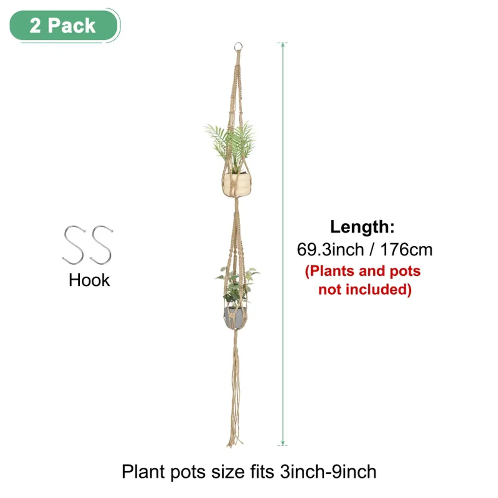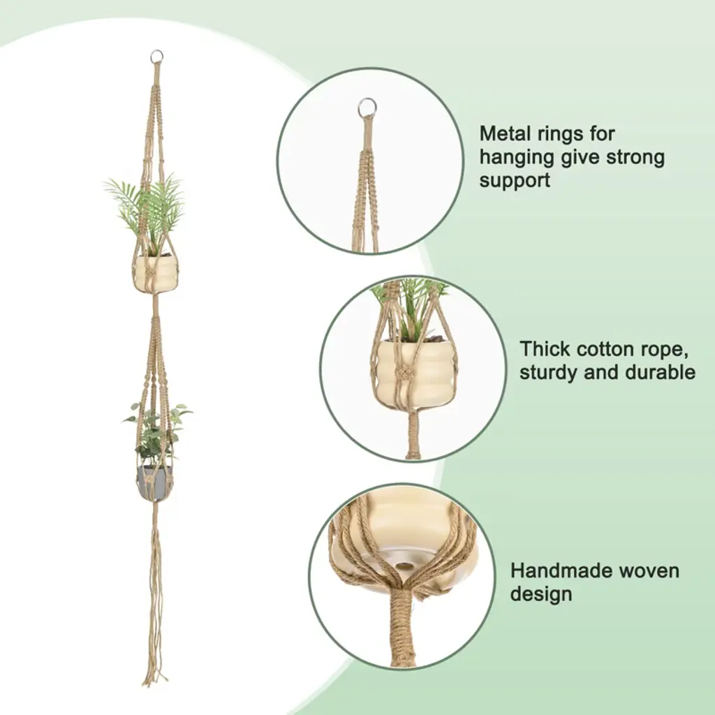 Unique Bargains Handmade Cotton Rope Hanging Basket Holder 69 Inch Brown 2-pack