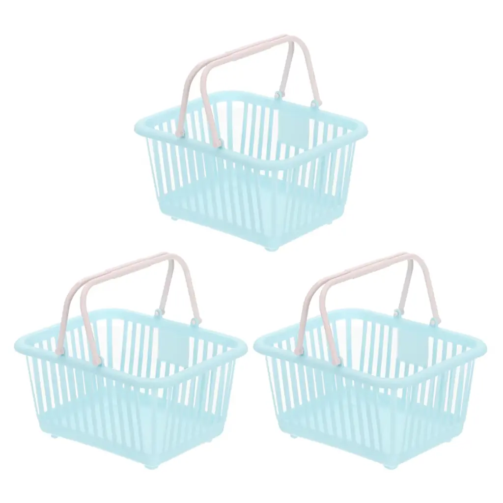 Unique Bargains Plastic Grocery Shopping Toy Organizing Mini Decorative Baskets 6.3" X 3.5" X 5.1" 3 Pcs Blue Green Cyan