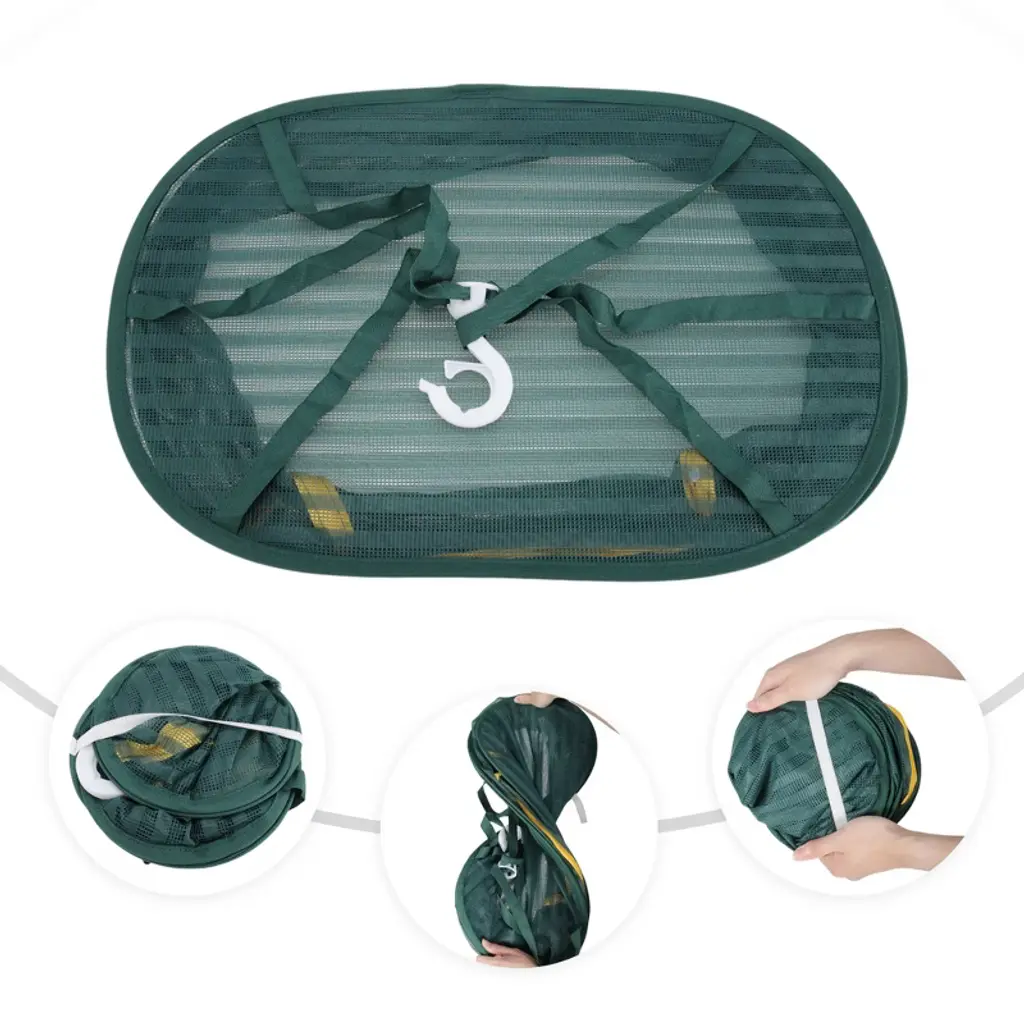 The clothes drying basket is soft to the touch, has no sharp-edged and hard surfaces, and is safe and reliable to use. It can easily accommodate your family's drying of clothes, keeping the room clean and tidy, and bringing great convenience to life. Can be fixed on the clothes drying rod, so there is no need to worry about it being blown away by the wind. The clothes drying basket is made of polyester mesh, steel wire, which has strong elastic recovery ability, strong and durable, light and heat-resistant. With tiling function, it can easily save space when not in use.