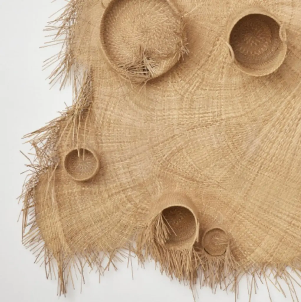United baskets by RF StudioUnique PieceDimensions: D 300 x H 310 cmMaterials: ReedUnited Baskets explores the process of landscape transformation and the persistence of local craft traditions. Vegetable fibers, reeds and totora reeds, are transformed into objects through weaving, using techniques that were developed on the coast of Peru more than five thousand years ago. Fibre weaving is considered the beginning of textile tradition in South America, before cotton or animal fibers. ESTUDIO RF is located in Lima, Peru. We are dedicated to the research of the contemporary habitat and natural environments in the Peruvian context, seeking to dissolve established limits between them. Our multidisciplinary team is conformed by visual artists, architects, traditional artisans, performers, designers, actors and writers. We regard art as an open field that functions like a hub that establishes new relationships between nature and human activity.We aim to rebuild the continuity between natural landscape, art and architecture by reconnecting the current urban condition with the bodily experience of being free in the wilderness. We acknowledge fluidity and non-definition of the landscape; a wild and dynamic setting were everything coexists without visible hierarchy or law.In opposition, the urban landscape is defined by social codification, segregation and segmentation of space. The values of the global market and technological modernity are creating distance and alienation in everyday life.Faced with this, we return to the heterogeneous, through natural ecosystems, to raw materials, to organic processes and to traditional local craft; we bring to light its real value, and reestablish contact between these elements and the body.We consider the human being and society not as nucleus, but as part of an ecosystem; a big community of living organisms. In a society governed by images, noise, artificial light and industrial materials, we find solace and intimacy in the darkness of the wild environment that meet us through the opaque and warm qualities of the natural shadows surrounding us.We create a balance between visible and palpable, between sound and silence, between industrial or digital production and natural or artisanal materials. Our goal, beyond ideologies or artistic intent and manifestos, is to reimagine the intimate acts of daily life as a potential means for future transformation.