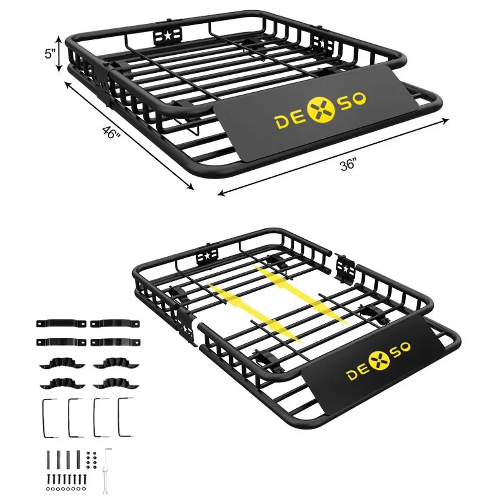 Universal Roof Rack Basket With Cargo Net, 46" X 36" Rooftop Cargo Carrier Basket, 200 Lbs Capacity Car Cargo Rack, For Suvs, Trucks, Vehicles