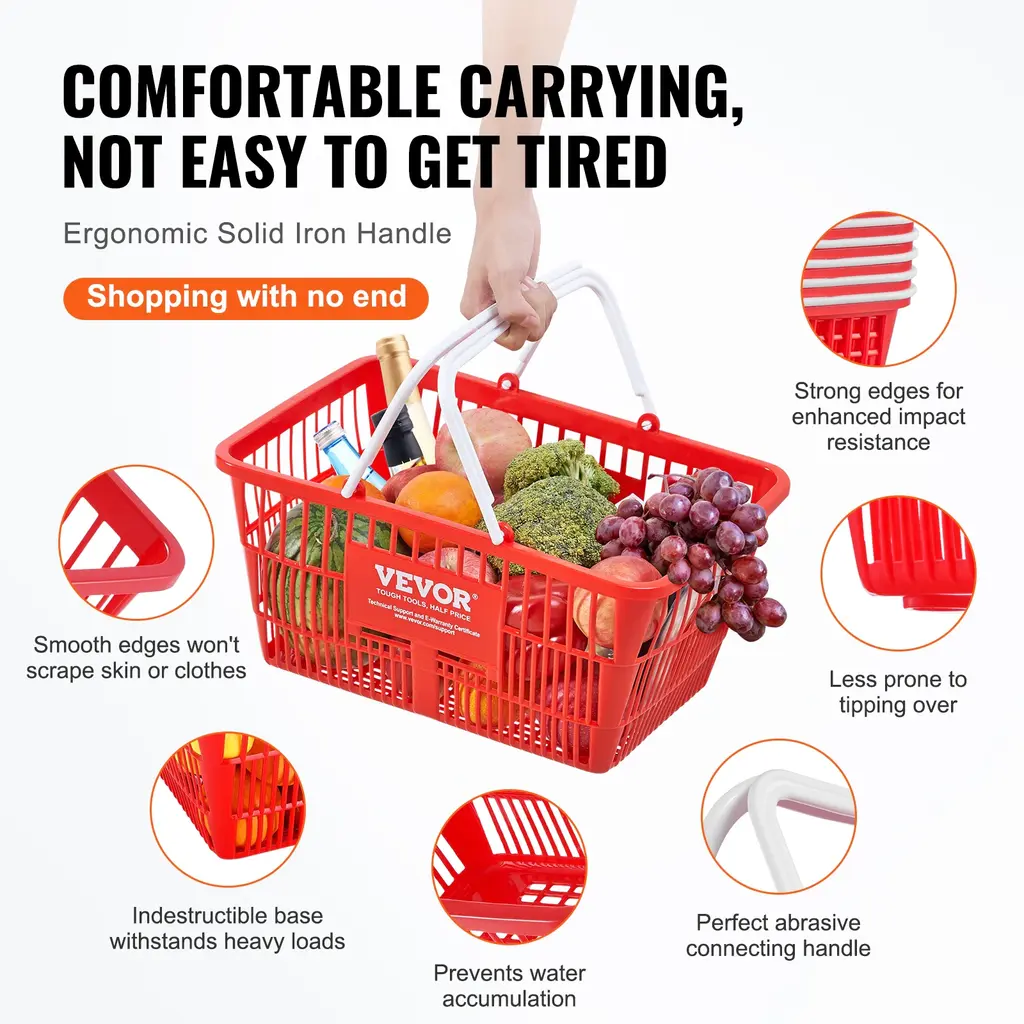 Vevor Shopping Basket,for Retail Store Supermarket Grocery Shopping - 16.5 X 11.8 X 8.27 Inch - Red,set Of 20, 21l
