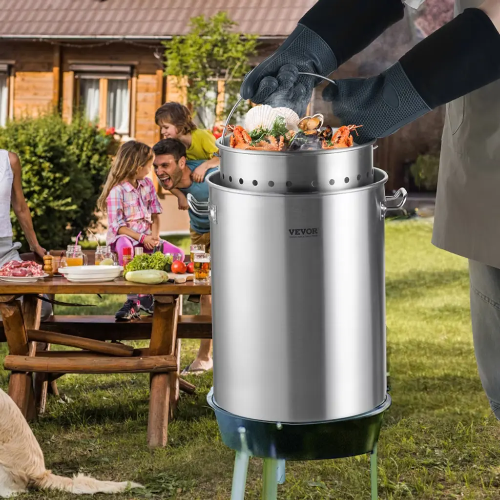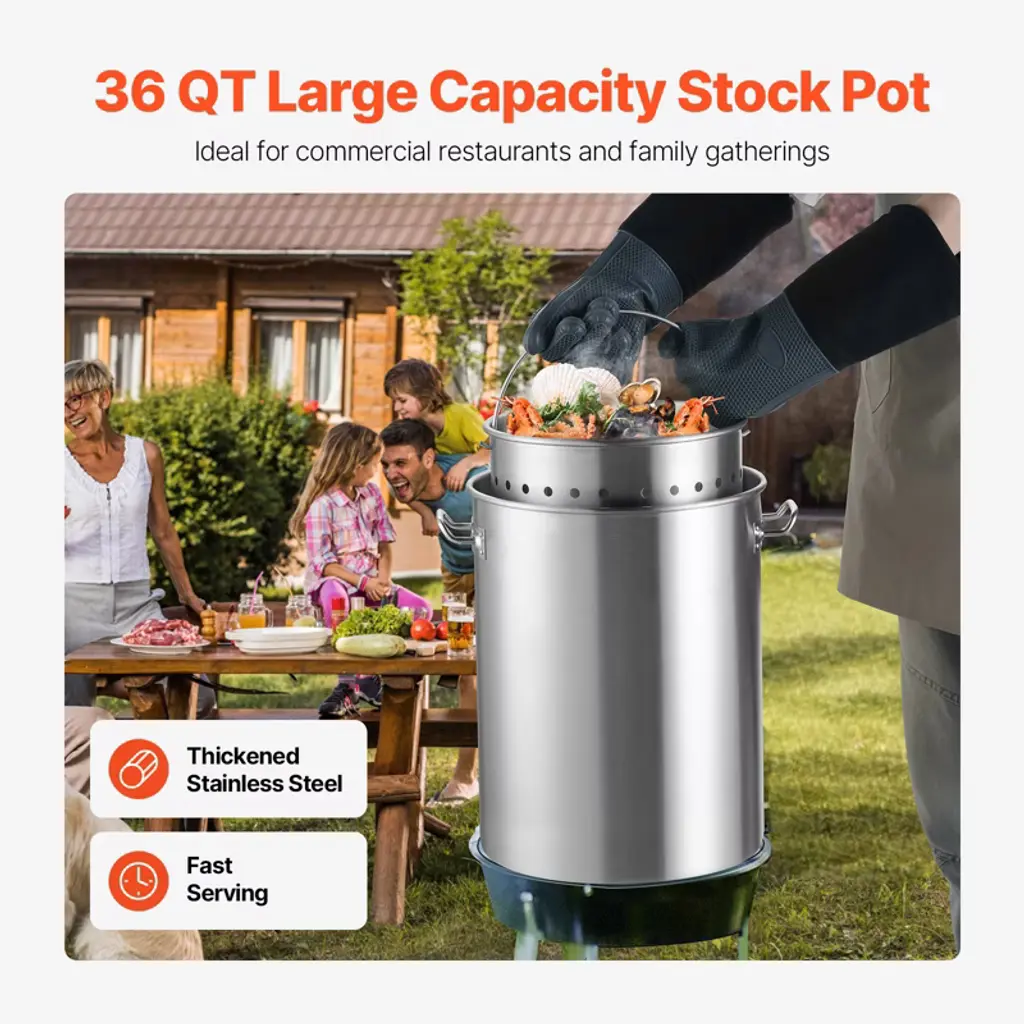 Vevor Stainless Steel Stockpot, 36 Quart Cooking Pots, Cookware Sauce Pot With Basket, Lid, And Handle, Sanding Treatment, Silver