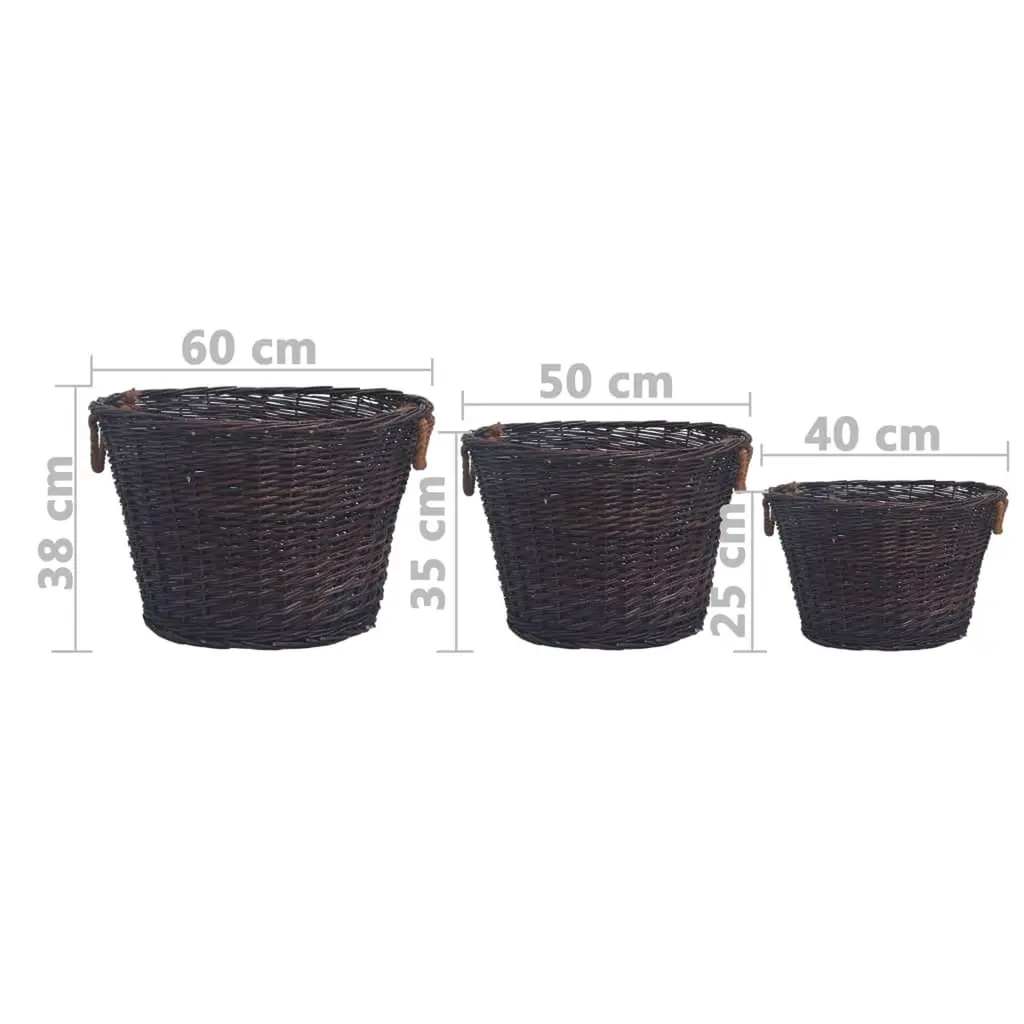 Vidaxl 3 Piece Stackable Firewood Basket Set Dark Brown Willow