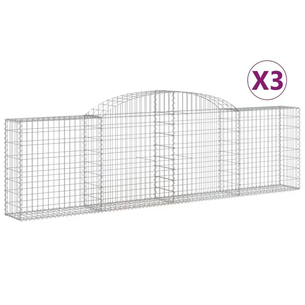Vidaxl Gabion Basket Silver Galvanized Iron 78.7 X 11.8 X 23.6 In - 118.1" X 19.7" X 23.6"/31.5" 3-pack