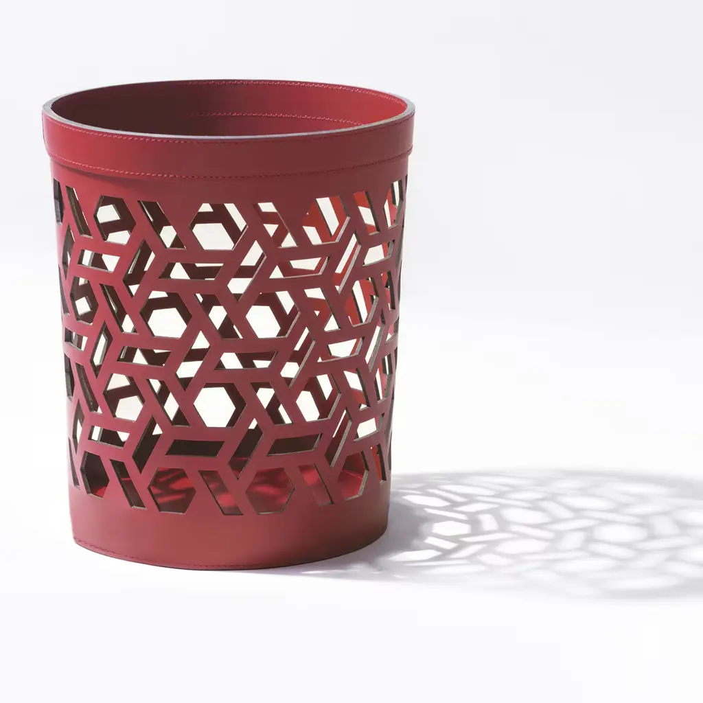 Traditional Vienna weaving is the inspiration for this round basket, crafted entirely from Finest Regenerated Leather. The result is a reinterpretation with an interesting and contemporary spin. The Vienna basket is ideal for towels, magazines or everyday objects and perfect for both indoor or outdoor use, featuring a UV-resistant and water-resistant finish and a non-slip waterproof rubber base.