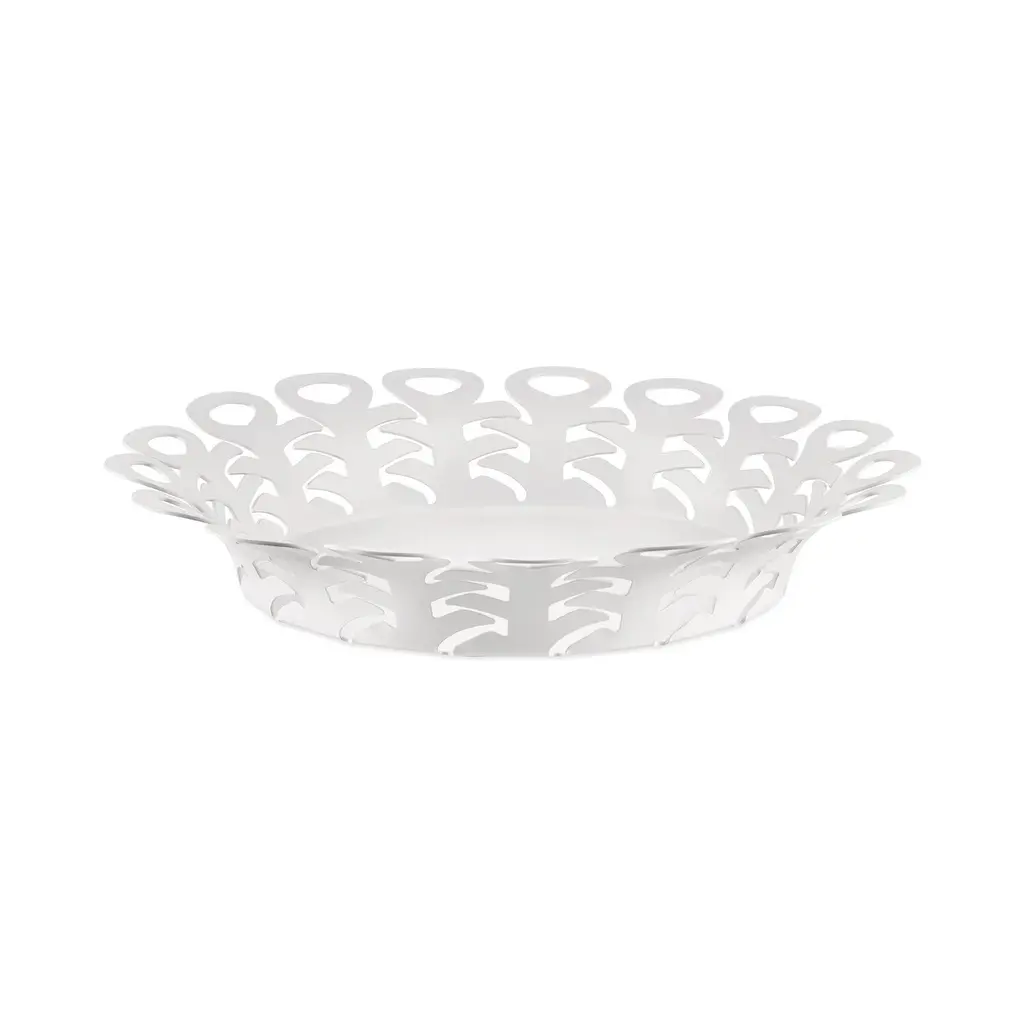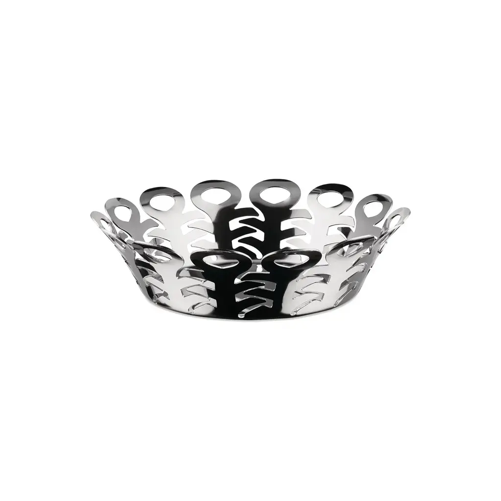 The Vimini Basket by Michel Boucquillon and Donia Maaoui for Alessi reinterprets traditional woven wicker through a refined, contemporary design. Crafted from laser-cut and mechanically molded sheet steel, it showcases the expert metalworking skills of the Alessi workshops. This sophisticated piece blends artisanal heritage with modern precision, making it a striking and elegant addition to any setting. Highlights