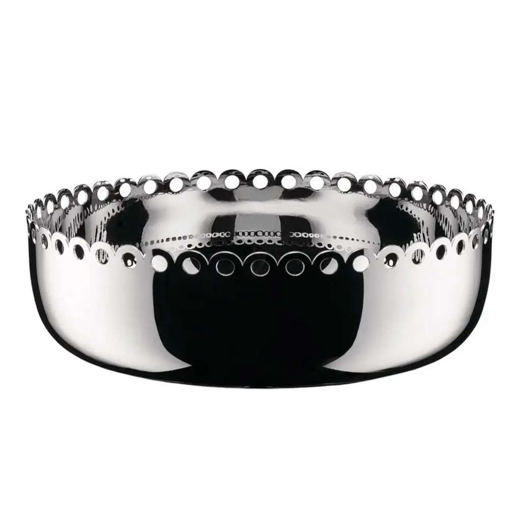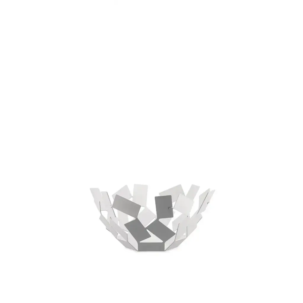 The Vimini Basket by Michel Boucquillon and Donia Maaoui for Alessi reinterprets traditional woven wicker through a refined, contemporary design. Crafted from laser-cut and mechanically molded sheet steel, it showcases the expert metalworking skills of the Alessi workshops. This sophisticated piece blends artisanal heritage with modern precision, making it a striking and elegant addition to any setting. Highlights