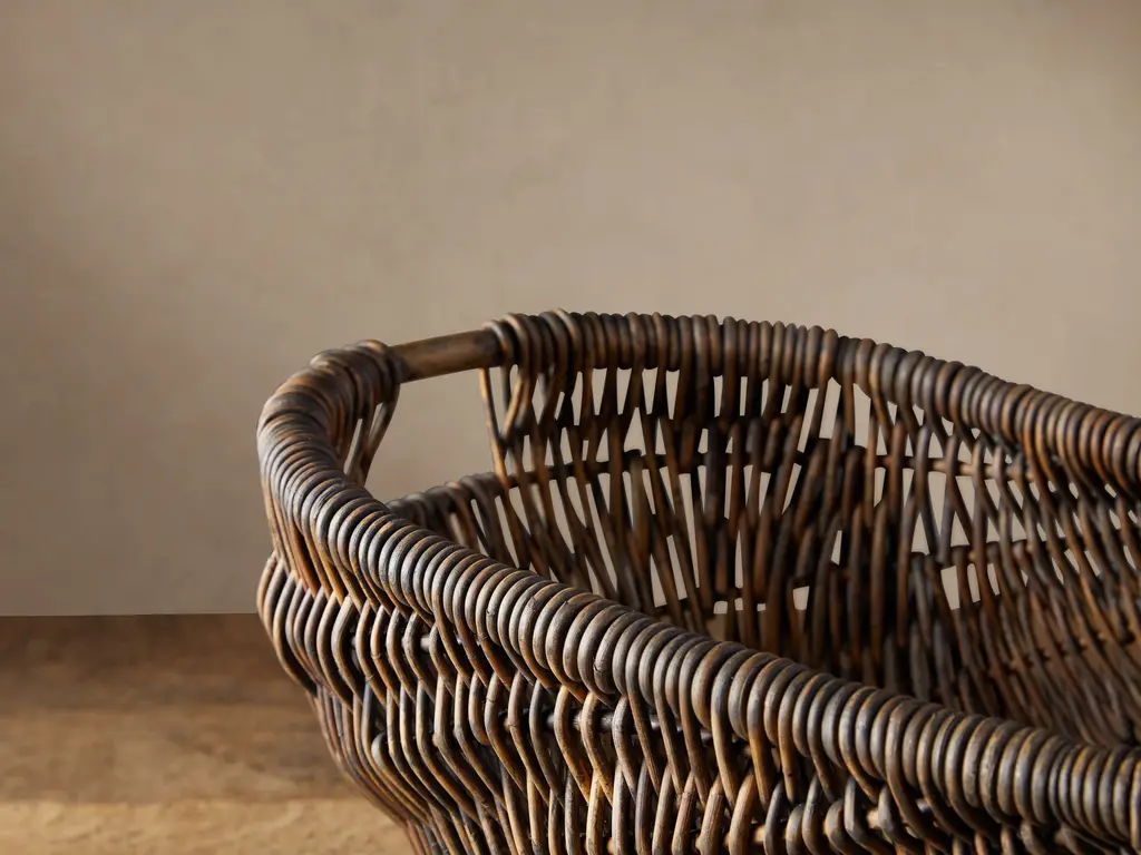 Handwoven from natural arurog reeds, this artisan-made basket is finished by hand with a vintage-inspired stain. Features a vintage-inspired hand-stained finish. Artisan-crafted pieces made with natural materials and hand-applied finishes may vary in color, pattern, shape, and texture, making each truly unique without affecting quality or performance.