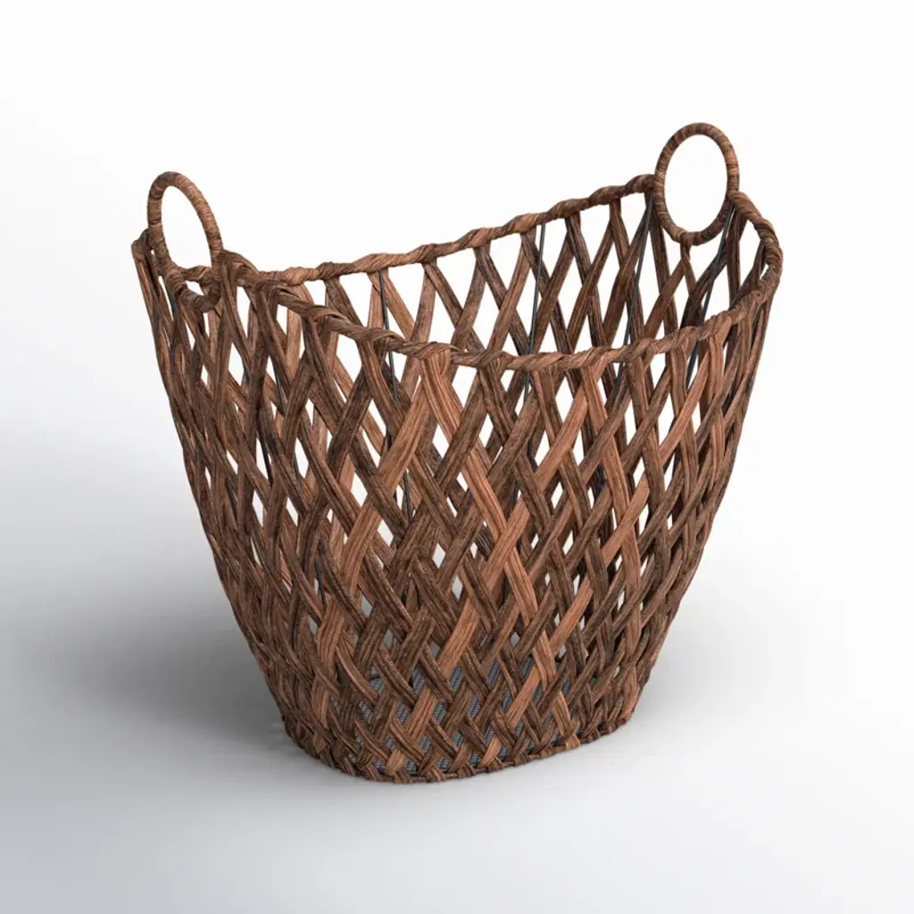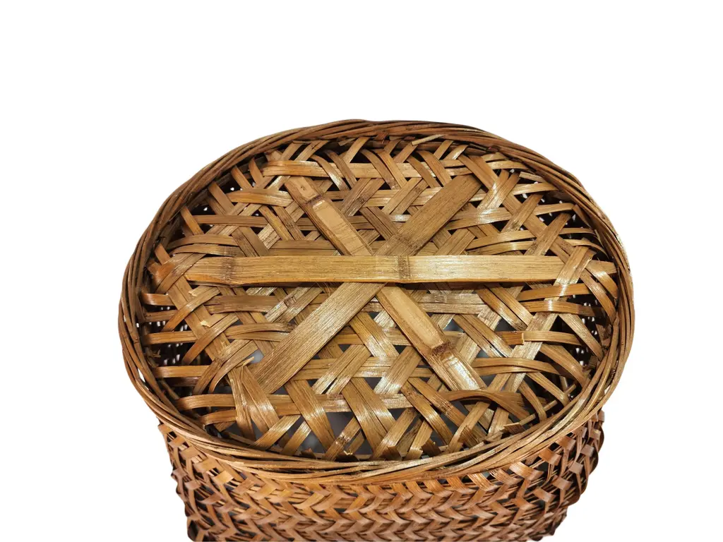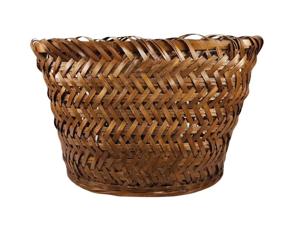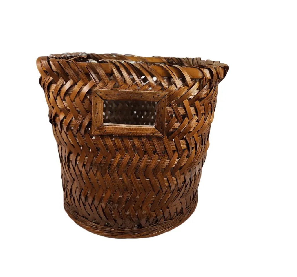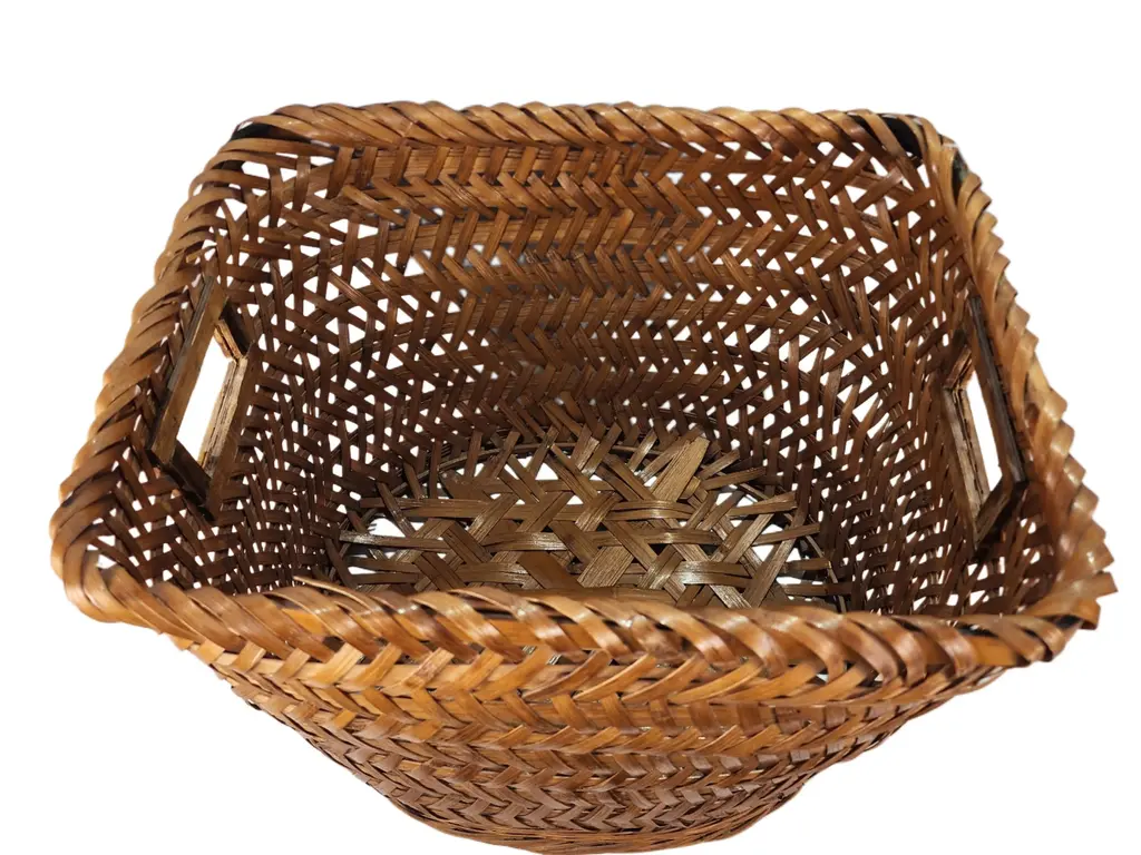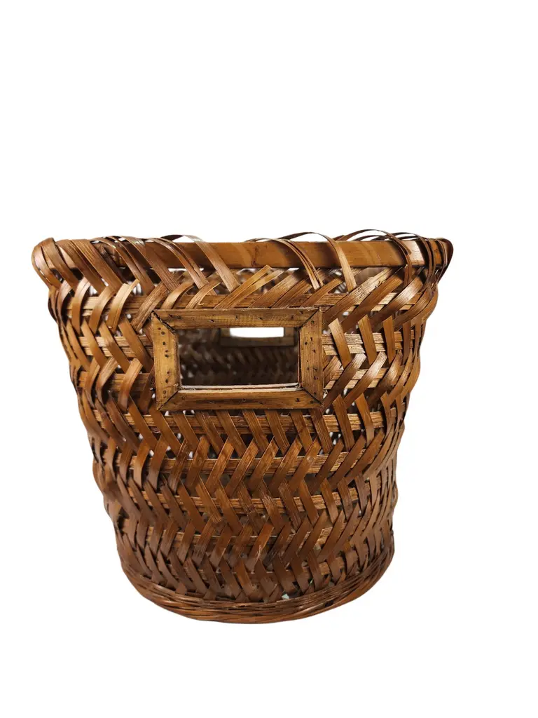Showcase your love of the timeless charm of Palm Beach Chinoiserie with this beautifully crafted woven wicker basket, blending Asian-inspired craftsmanship with coastal sophistication. Featuring a sturdy wood frame and rectangular wood handles on the sides, this basket is both decorative and functional, perfect for storage or display. Features & Condition - Style: Chinoiserie, Palm Beach, Asian, Coastal - Material: Woven wicker with wooden handles and frame - Dimensions: 16.5" W x 13" D x 11.5" H Historical Significance & Creator Details While the exact maker is unclear, similar woven wicker Chinoiserie baskets were widely produced in the mid-to-late 20th century, often by artisans specializing in Asian-inspired home decor. These baskets were popular in Palm Beach and Hollywood Regency interiors, valued for their versatile design and craftsmanship. Why You’ll Love It Perfect for coastal, traditional, or eclectic interiors, this basket adds a touch of refined elegance to any space. Whether used for storage, decorative display, or as a statement piece, it serves as both functional decor and a conversation starter.