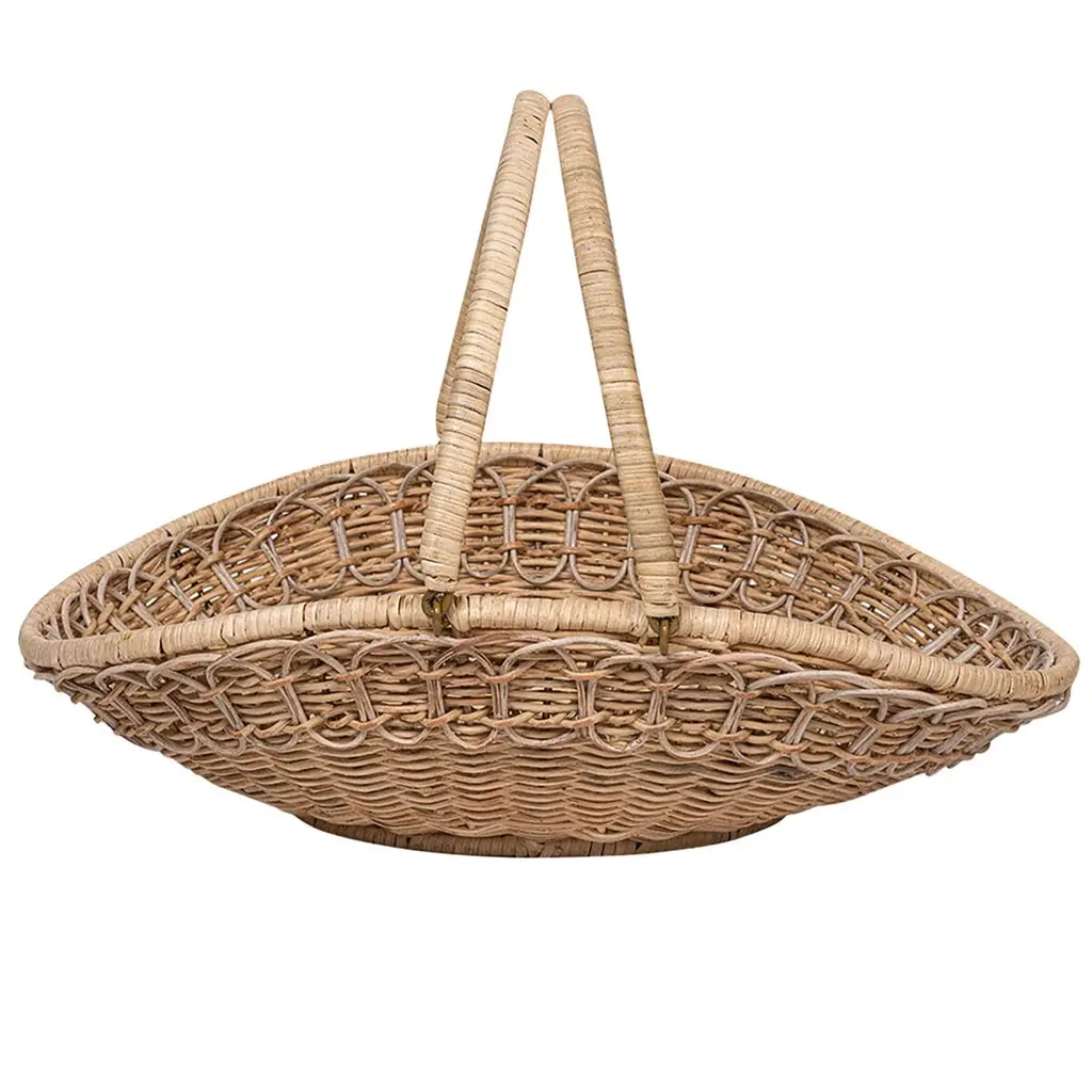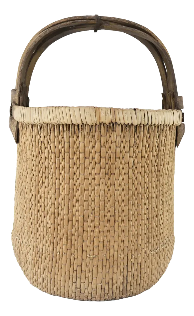 Vintage Woven Rattan Carrying Basket With Large Tripartite Handle