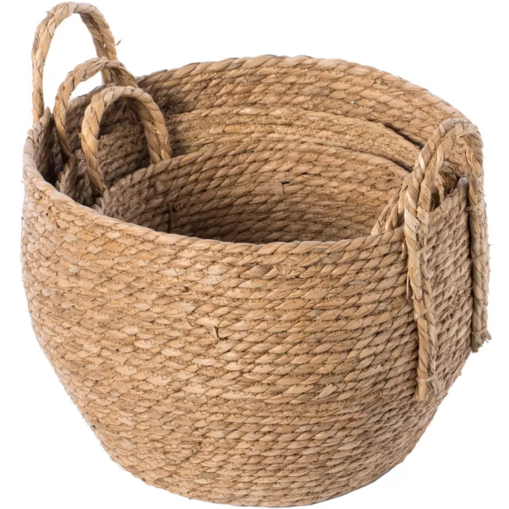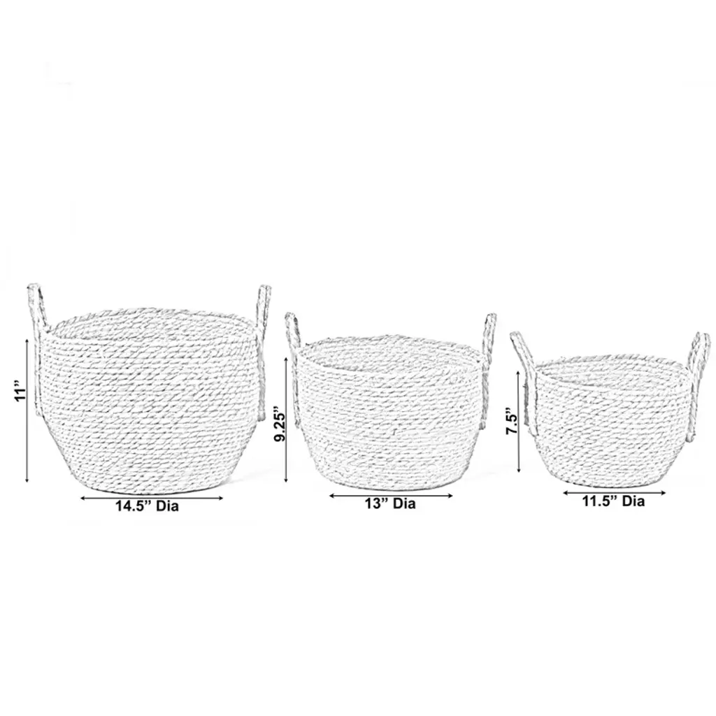Vintiquewise Decorative Round Wicker Woven Rope Storage Blanket Basket With Braided Handles - Set Of 3