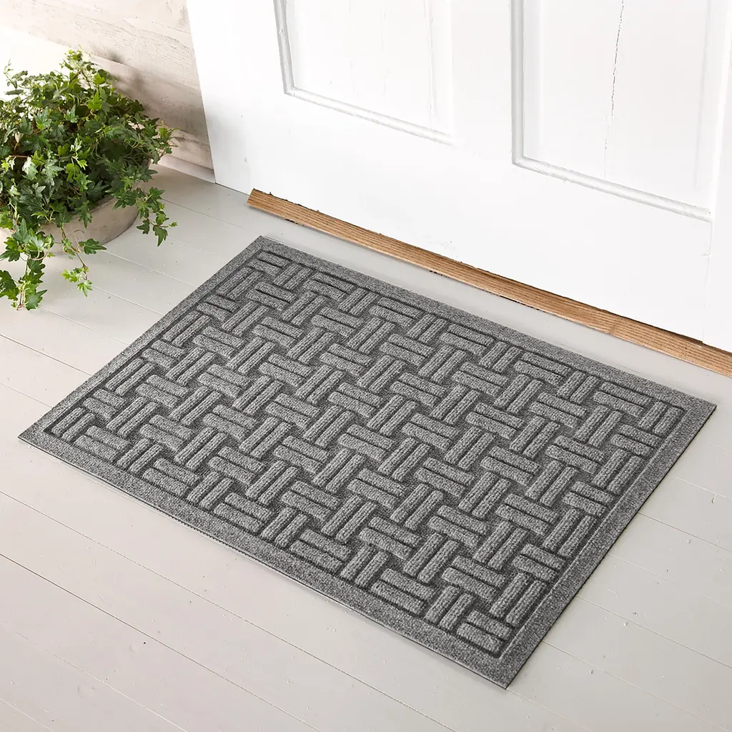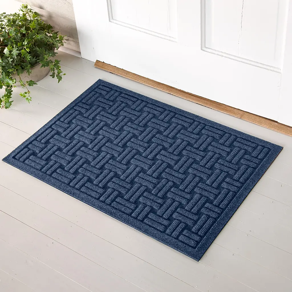 Our dependable, reliable Waterhogs Doormats are better than ever! These commercial-grade Basket Weave Waterhogs offer the same high-level of performance, durability and effectiveness you've come to depend on with a more eco-friendly construction. Waterhog Mats now feature a super-durable, PET fabric face made from 100% recycled post-consumer plastic bottles. Depending upon the size, each Waterhog can contain 10-30 recycled bottles that otherwise may have been destined for a landfill. The bi-level surface grabs onto and soaks up moisture, dirt, leaves and more to keep floors clean and dry. Plus, the unique water dam design holds up to 1½ gallons of water per square yard. Super-durable Waterhog Mats are anti-static, quick-drying and they won't fade or rot. Just vacuum or hose down to clean - easy! The hefty rubber backing has 20% recycled content and stays in place. Certified Slip-Resistant by the NFSI (National Floor Safety Institute). Exceeds requirements for FF2-70-Standard for surface flammability of small carpets. Sizes are approximate. Made in USA.