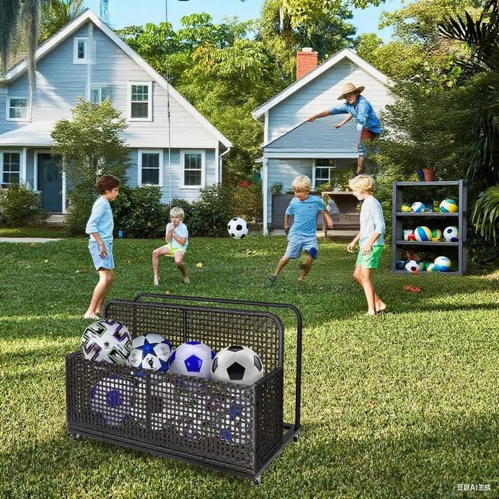 Waterproof Wicker Pool Float Storage Basket with Wheels - Large Outdoor Organizer for Pool Toys
