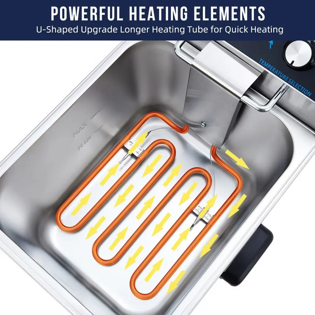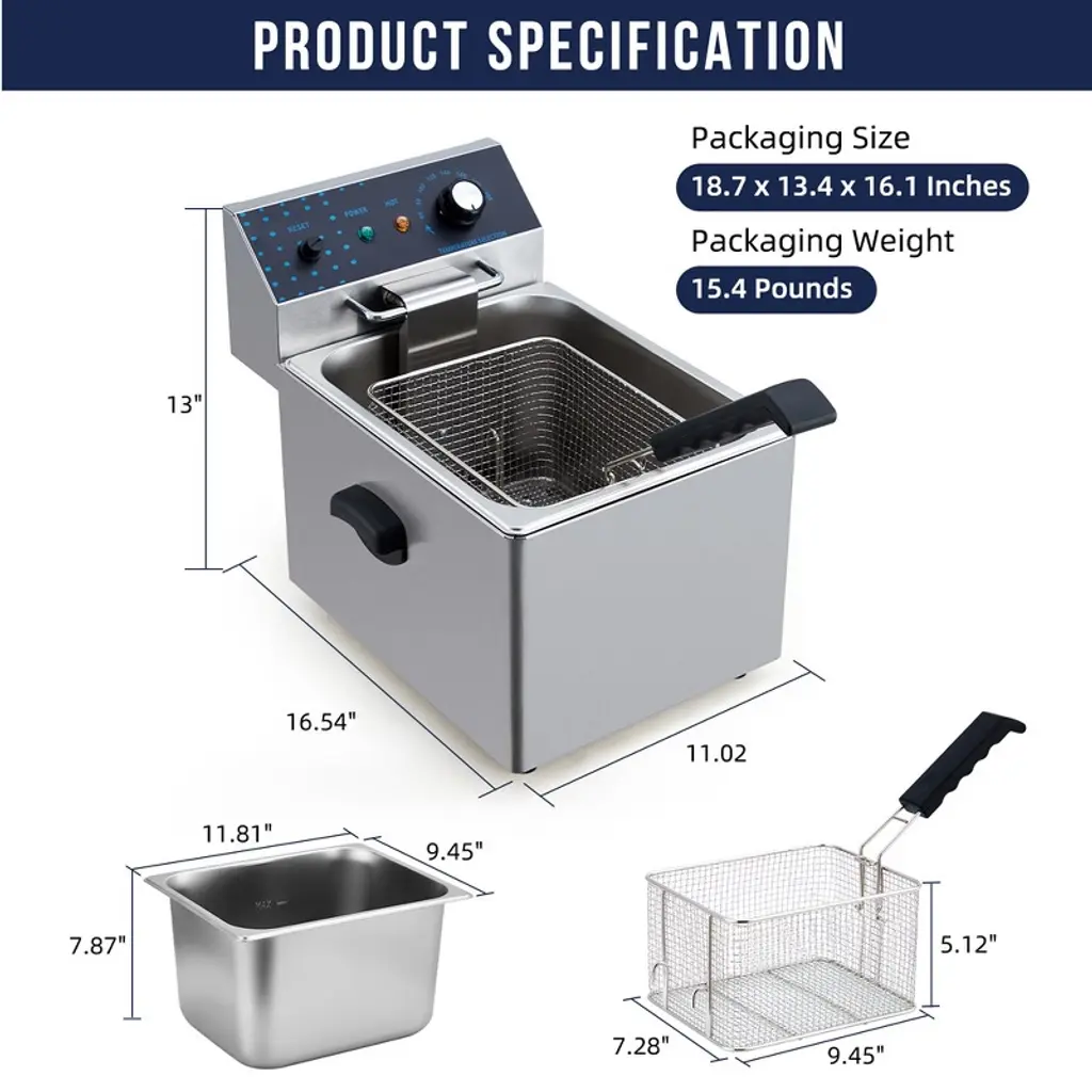 Whizmax Electric Deep Fryer Stainless Steel With Basket, 8L/8.45qt Countertop Fryers, 1600w Single Tank Electric Fryer