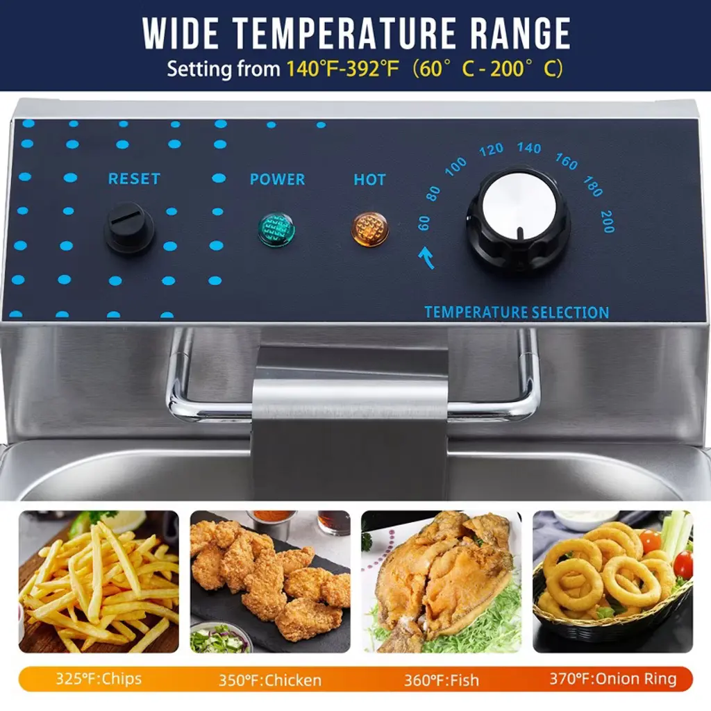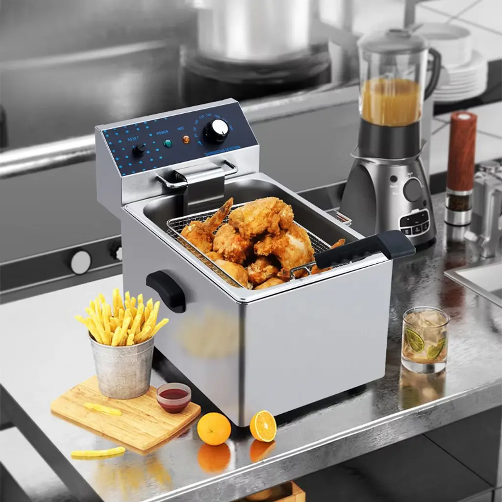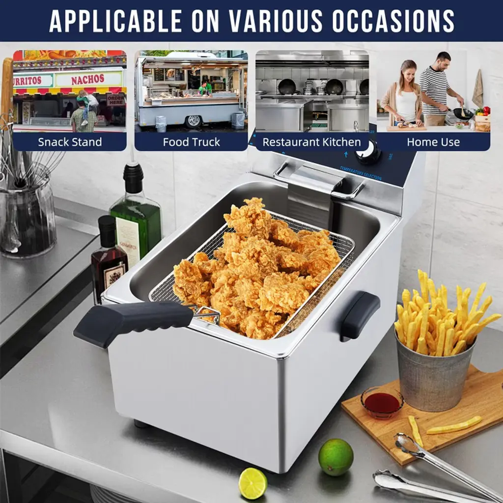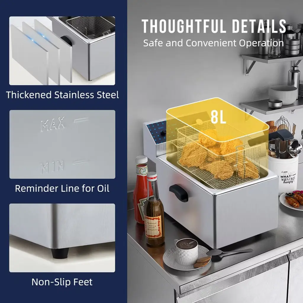 Electric Deep Fryer Stainless Steel with Basket, 8L/8.45QT Countertop Fryers, 1600W Single Tank Electric Fryer for Kitchen, Restaurant and Commercial Use, Temperature Adjustable 140-392℉