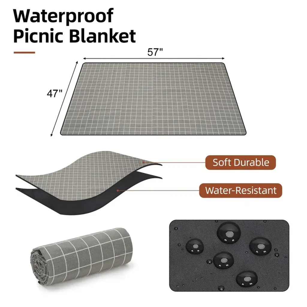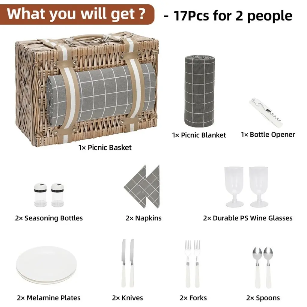 Wicker Picnic Basketwaterproof Picnic Blanket, With Cooler, With Tableware Set, Christmas, Thanksgiving Gift Baskets - Grey Check
