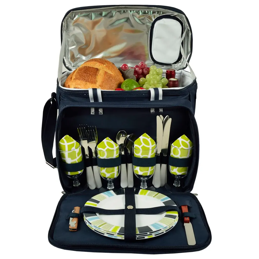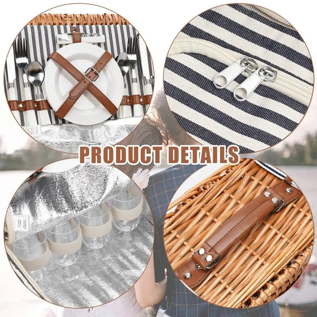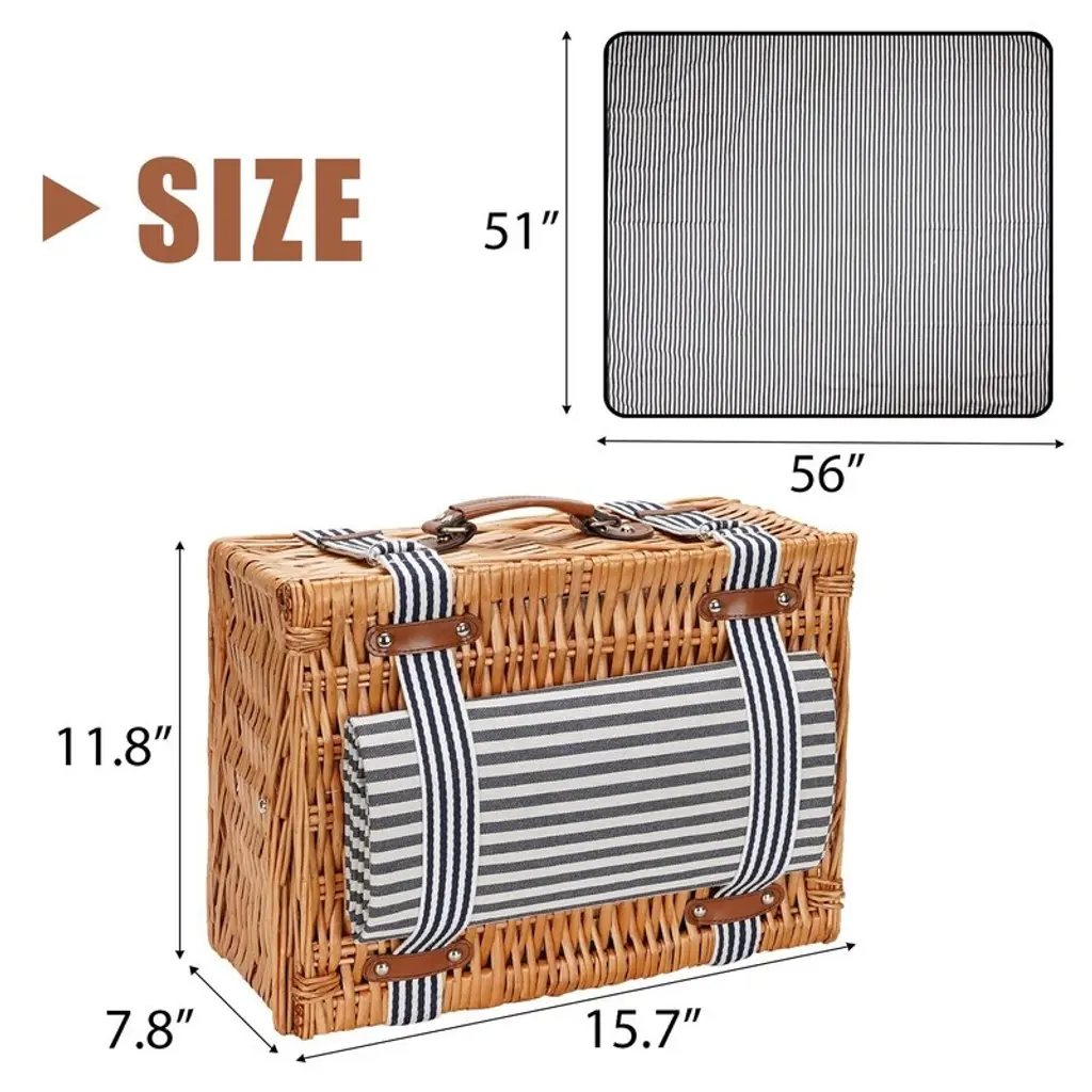 Wicker Picnic Basketwaterproof Picnic Blanket, With Cooler, With Tableware Set, Christmas, Thanksgiving Gift Baskets - Navy Stripe