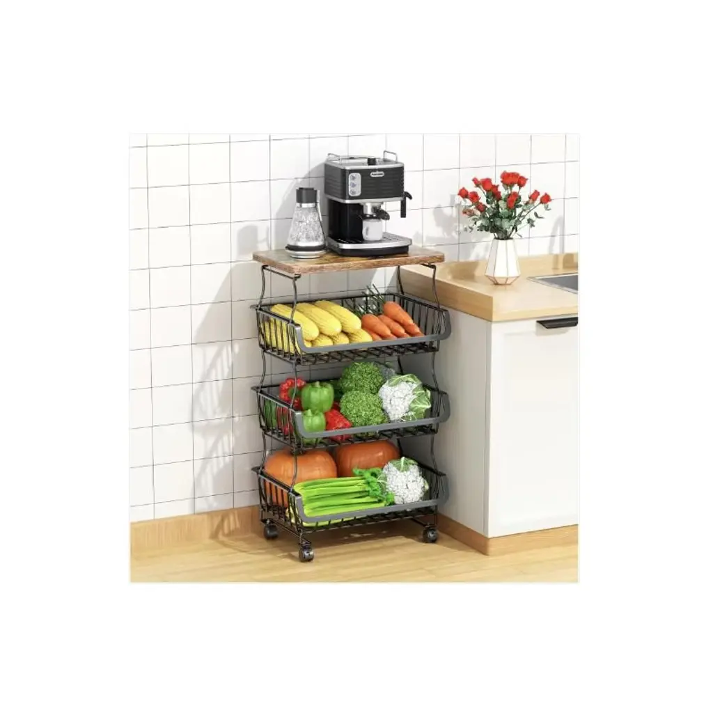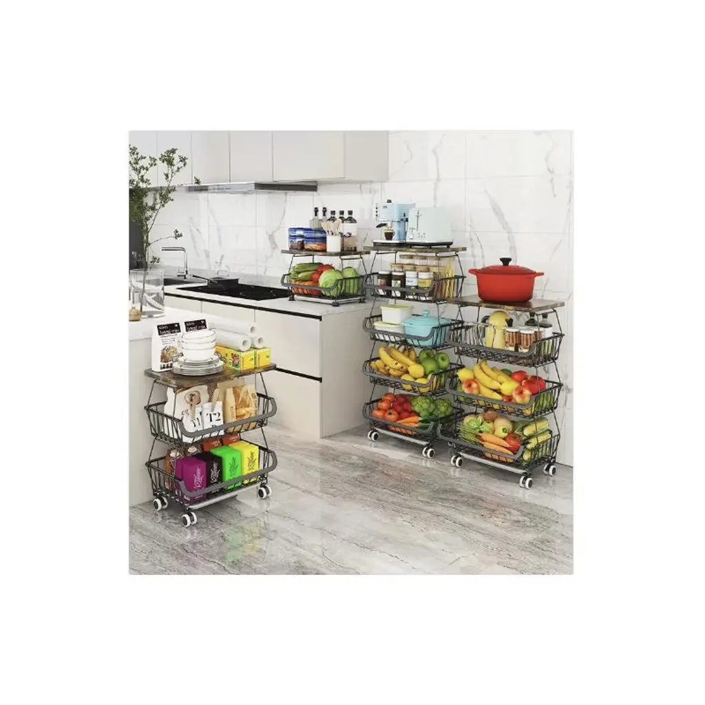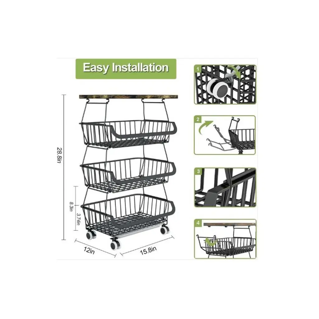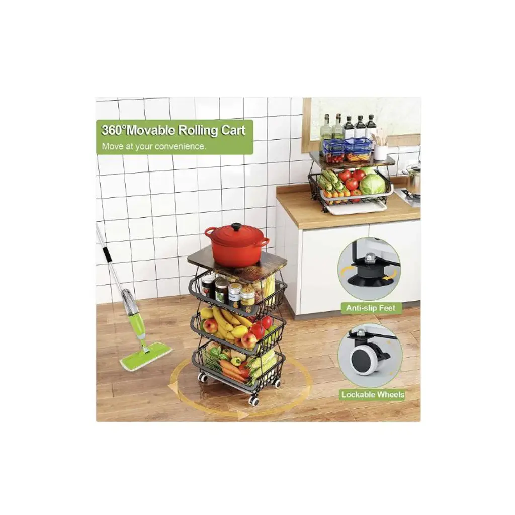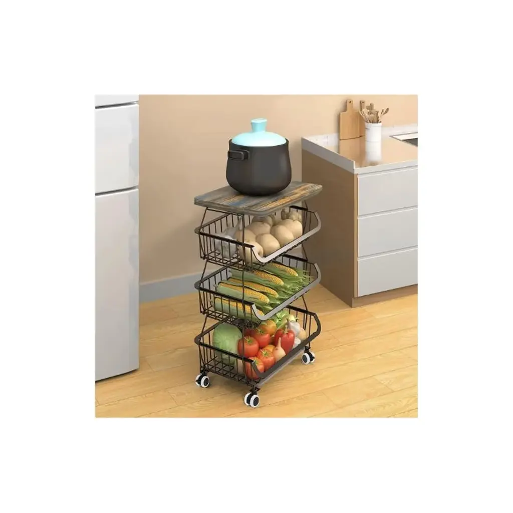With four spacious tiers, this storage basket provides generous space to organize a variety of fruits, vegetables, and even pantry essentials. Each tier keeps produce separate, preventing overcrowding and ensuring easy access to items like apples, oranges, potatoes, or onions, making it ideal for keeping your kitchen or pantry tidy.