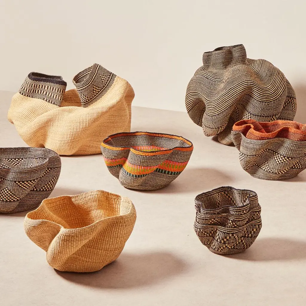 Conceived by Asakalugre "Madame 1000" Aduko, one of Baba Tree's master weavers, this iconic basket features two 'heads', symbolizing both the unique identities and interconnectedness between man and woman. Requiring a high degree of expertise to execute, only a few of these baskets are available at a given time, reflecting the time and skill needed to create each. Featuring the wave shape found in the body of the Yoomelingah, and exotic and detailed designs that surround the perimeter of each opening, each Woman and Man basket is a true original.