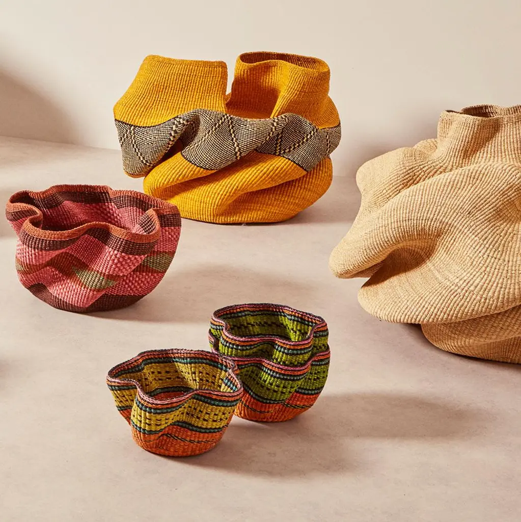 Conceived by Asakalugre "Madame 1000" Aduko, one of Baba Tree's master weavers, this iconic basket features two 'heads', symbolizing both the unique identities and interconnectedness between man and woman. Requiring a high degree of expertise to execute, only a few of these baskets are available at a given time, reflecting the time and skill needed to create each. Featuring the wave shape found in the body of the Yoomelingah, and exotic and detailed designs that surround the perimeter of each opening, each Woman and Man basket is a true original.
