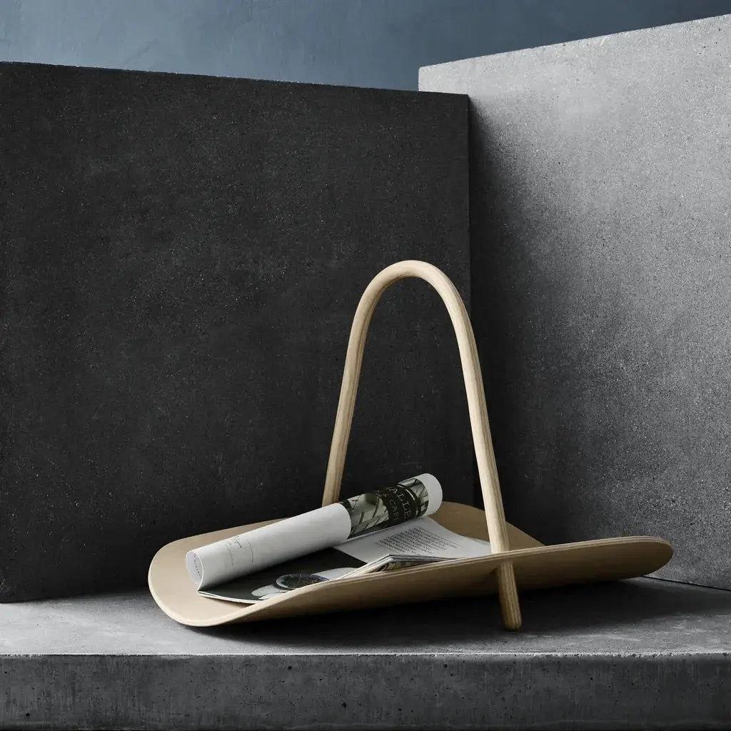 The British industrial designer Benjamin Hubert is brilliant at combining aesthetics with functionality – and turning his designs into a visual pleasure. With this basket in solid wood and veneer he has created an aesthetic silhouette and a practical alternative to the traditional newspaper rack. The basket fits perfectly next to any lounge setting and you can use it to store everything from magazines to knitting gear. The handle in solid steam bent wood makes it easy to move around and together with the shell in pressure moulded veneer, the materials used for this basket represent some of the authentic techniques where Fritz Hansen has been best in class for decades.