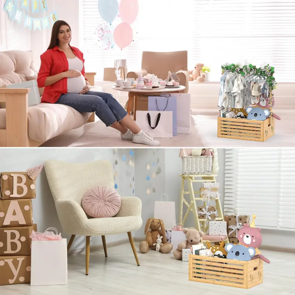 Elevate your gift-giving and storage game with our Wooden Portable Gift Basket in Natural!aa charming blend of rustic elegance and practical design, crafted to keep your gifts safe, organized, and beautifully presented. Made from high-quality natural wood, this basket is both sturdy enough to hold a variety of items and stylish enough to double as a decorative piece, making it ideal for storing gifts, party favors, or even everyday treasures in your home. Its portable design adds convenience, letting you carry or display it with ease.