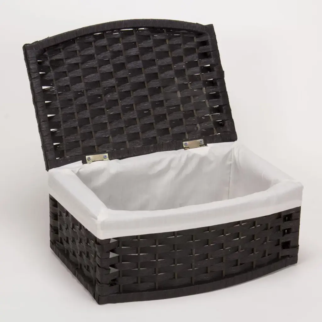 Woven Basket With Lid, Paper Rope Basket With Curved Front, Washable Poly-cotton Liner, Black