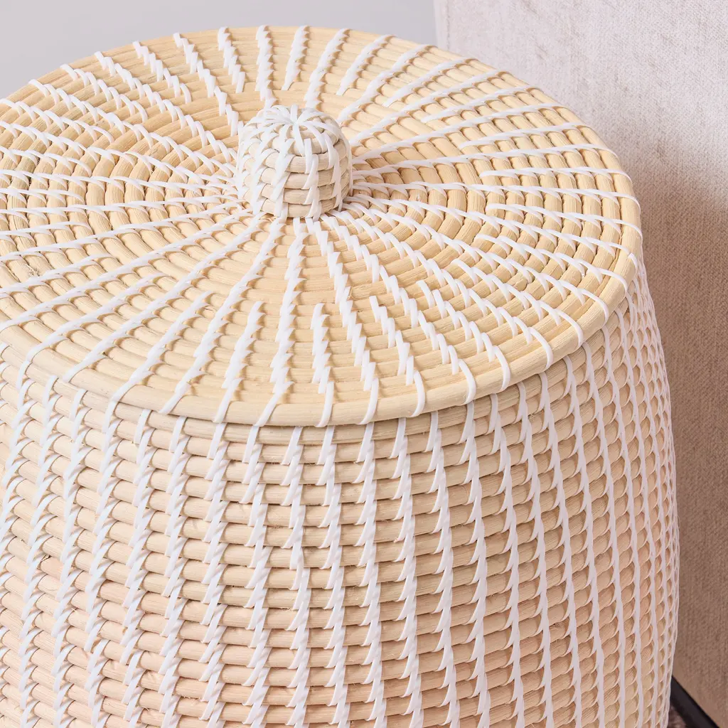 Handwoven from rattan and wicker, this hamper conceals dirty clothes under its lidded top and works equally well storing toys, books or bedding. It's brought to you in collaboration with Pottery Barn Kids.