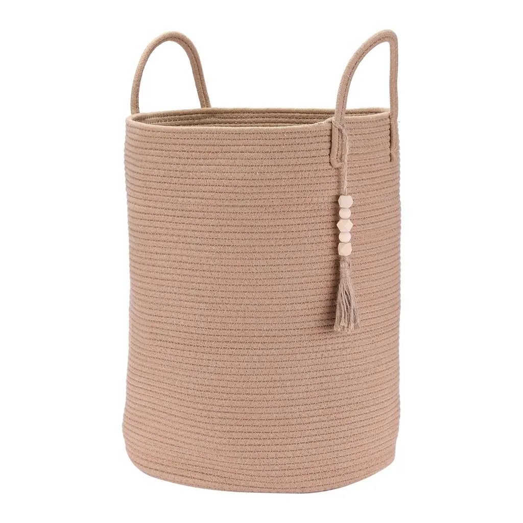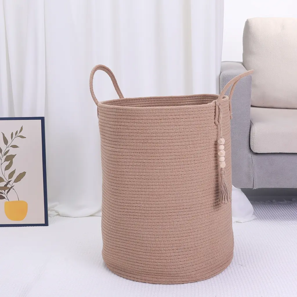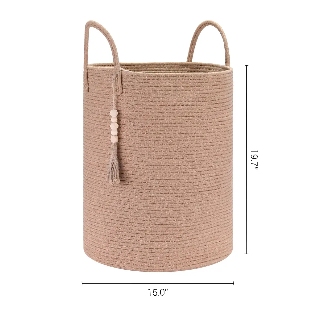 Woven Storage Bin With Handle And Tassel Beads, Storage Basket Organizer Bin For Blankets, Clothes, Shoes - 19*15in - Coffee
