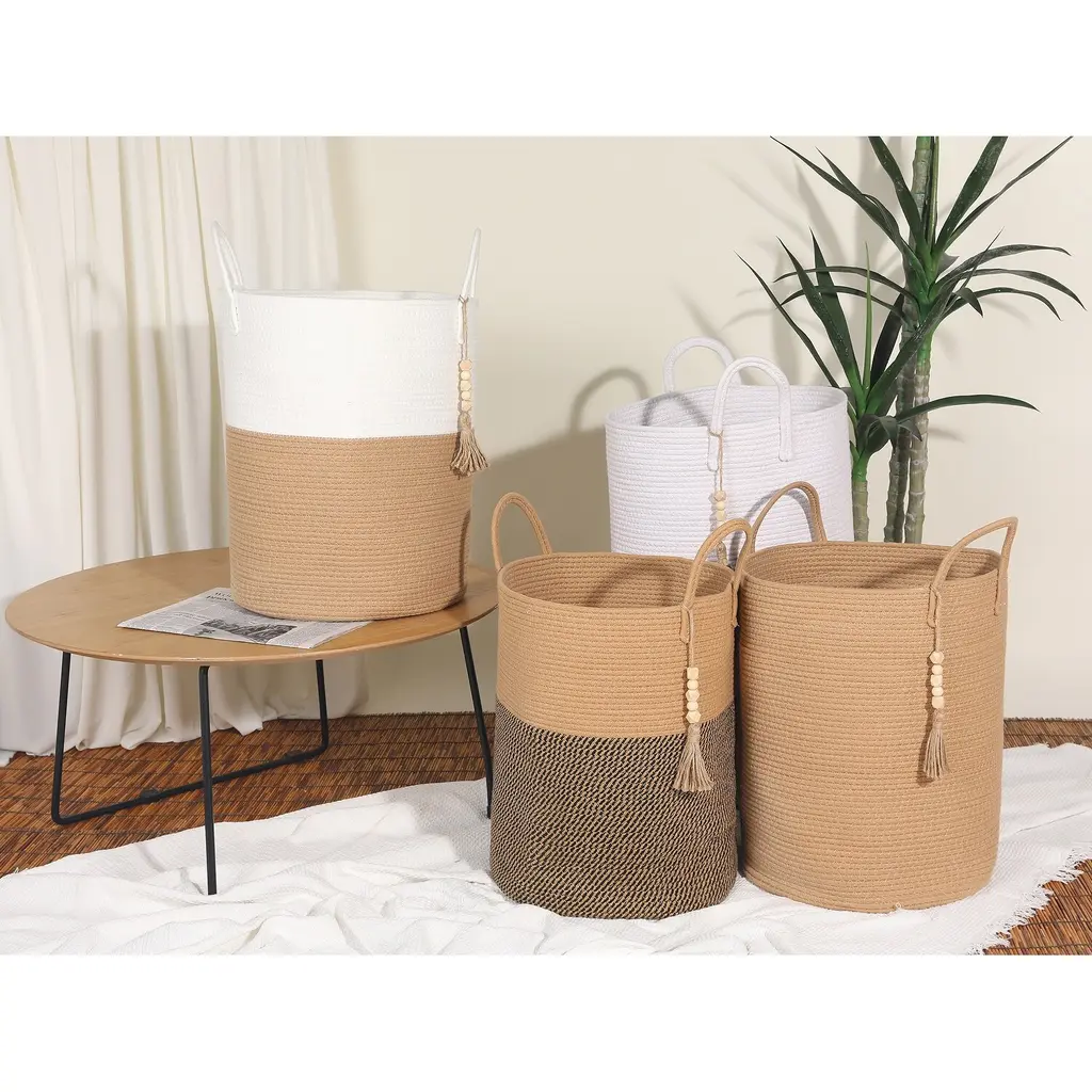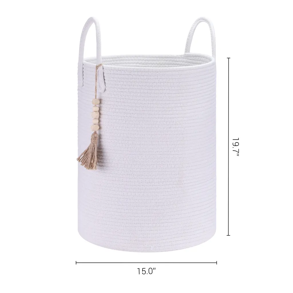 Premium Material: Our organization baskets are meticulously handcrafted from odorless cotton rope. They are designed with no sharp corners. The widened handles and chic appearance make these baskets a fashionable and functional addition to any decorEasy Shaping: Upon receiving your rope basket, please remove it from the packaging and fill it with items such as clothes or dolls to help it regain its shape. For quicker shaping, consider using a steam ironCompact Size: Our closet woven basket is suitable for living room TV cabinets, shelves, closets office tables, and room cube bookshelves. Breathable cotton rope material to your things from dust and dumping. In addtion, the storage cube bin also can be a shoe basket for entrywayGreat Gift: This basket storage perfect size to fit everything and very aesthetic. Worked perfectly for making a get-well basket for a friend. Our woven storage basket is a ideal gift for Easter, Christmas, Thanksgiving, Mother's Day, Father's Day, Valentine's Day, or girl's birthdayMultiple Use: This large basket is great for putting blankets, shoes, clothes, towels, decorative pillows, hats, scarves, magazines, headset wire, remote control, CD, flowers and more home supplies by the front door. Fits on a bedside table, closet shelf, bookshelf, desk, floor, etcOur basket for bathroom, and designed with jute string and portable handles on the base. Minimalistic combined with a rustic style makes the whole flower basket simple and elegant. Handles design, easy to move and take away, free awesome practical adorable jute storage bin for daily use.These cotton rope baskets are designed to fit perfectly on shelves, closets, and even under beds, making them an ideal solution for organizing your home or office.