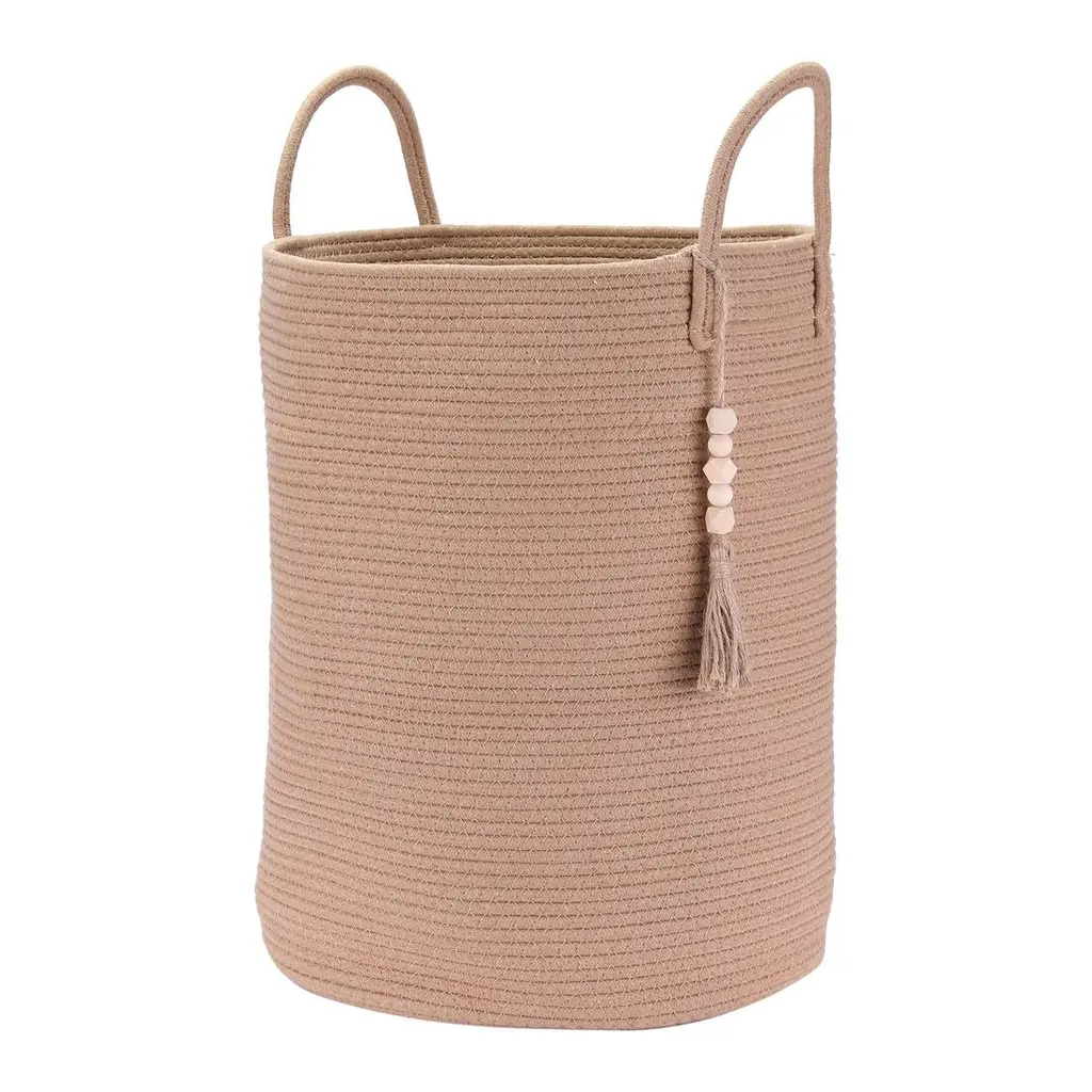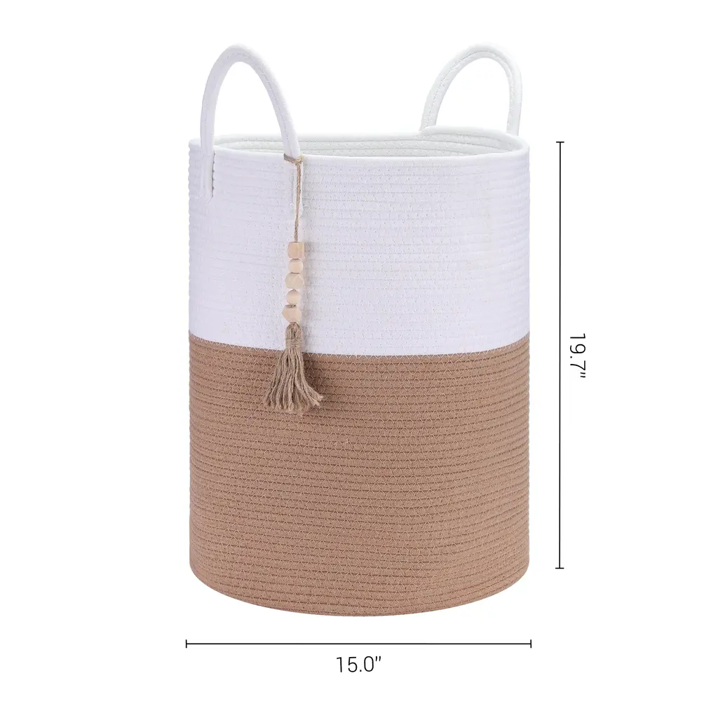 Woven Storage Bin With Handle And Tassel Beads, Storage Basket Organizer Bin For Blankets, Clothes, Shoes - 19*15in - White/coffee