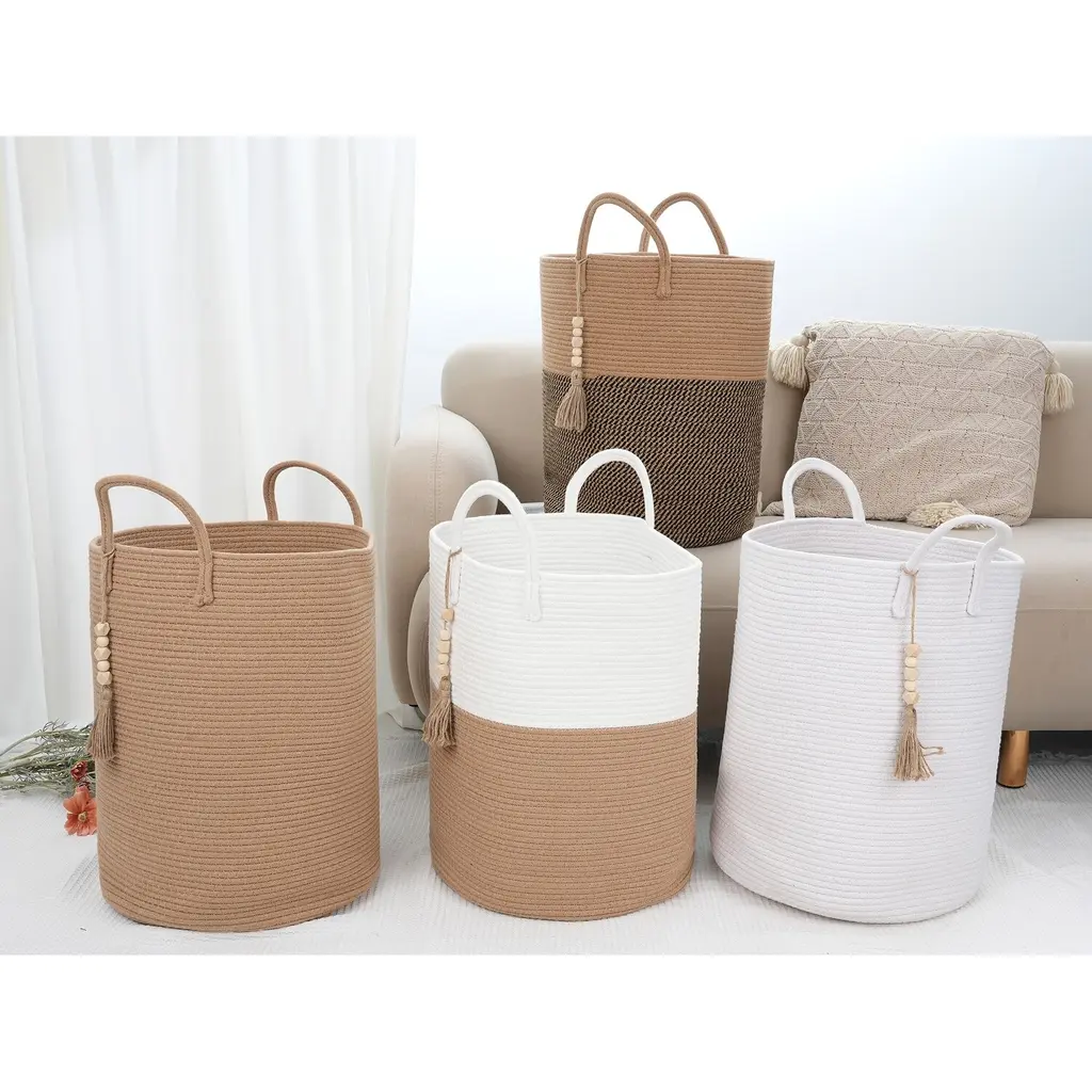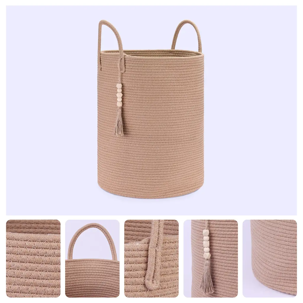 Premium Material: Our organization baskets are meticulously handcrafted from odorless cotton rope. They are designed with no sharp corners. The widened handles and chic appearance make these baskets a fashionable and functional addition to any decorEasy Shaping: Upon receiving your rope basket, please remove it from the packaging and fill it with items such as clothes or dolls to help it regain its shape. For quicker shaping, consider using a steam ironCompact Size: Our closet woven basket is suitable for living room TV cabinets, shelves, closets office tables, and room cube bookshelves. Breathable cotton rope material to your things from dust and dumping. In addtion, the storage cube bin also can be a shoe basket for entrywayGreat Gift: This basket storage perfect size to fit everything and very aesthetic. Worked perfectly for making a get-well basket for a friend. Our woven storage basket is a ideal gift for Easter, Christmas, Thanksgiving, Mother's Day, Father's Day, Valentine's Day, or girl's birthdayMultiple Use: This large basket is great for putting blankets, shoes, clothes, towels, decorative pillows, hats, scarves, magazines, headset wire, remote control, CD, flowers and more home supplies by the front door. Fits on a bedside table, closet shelf, bookshelf, desk, floor, etcOur basket for bathroom, and designed with jute string and portable handles on the base. Minimalistic combined with a rustic style makes the whole flower basket simple and elegant. Handles design, easy to move and take away, free awesome practical adorable jute storage bin for daily use.These cotton rope baskets are designed to fit perfectly on shelves, closets, and even under beds, making them an ideal solution for organizing your home or office.