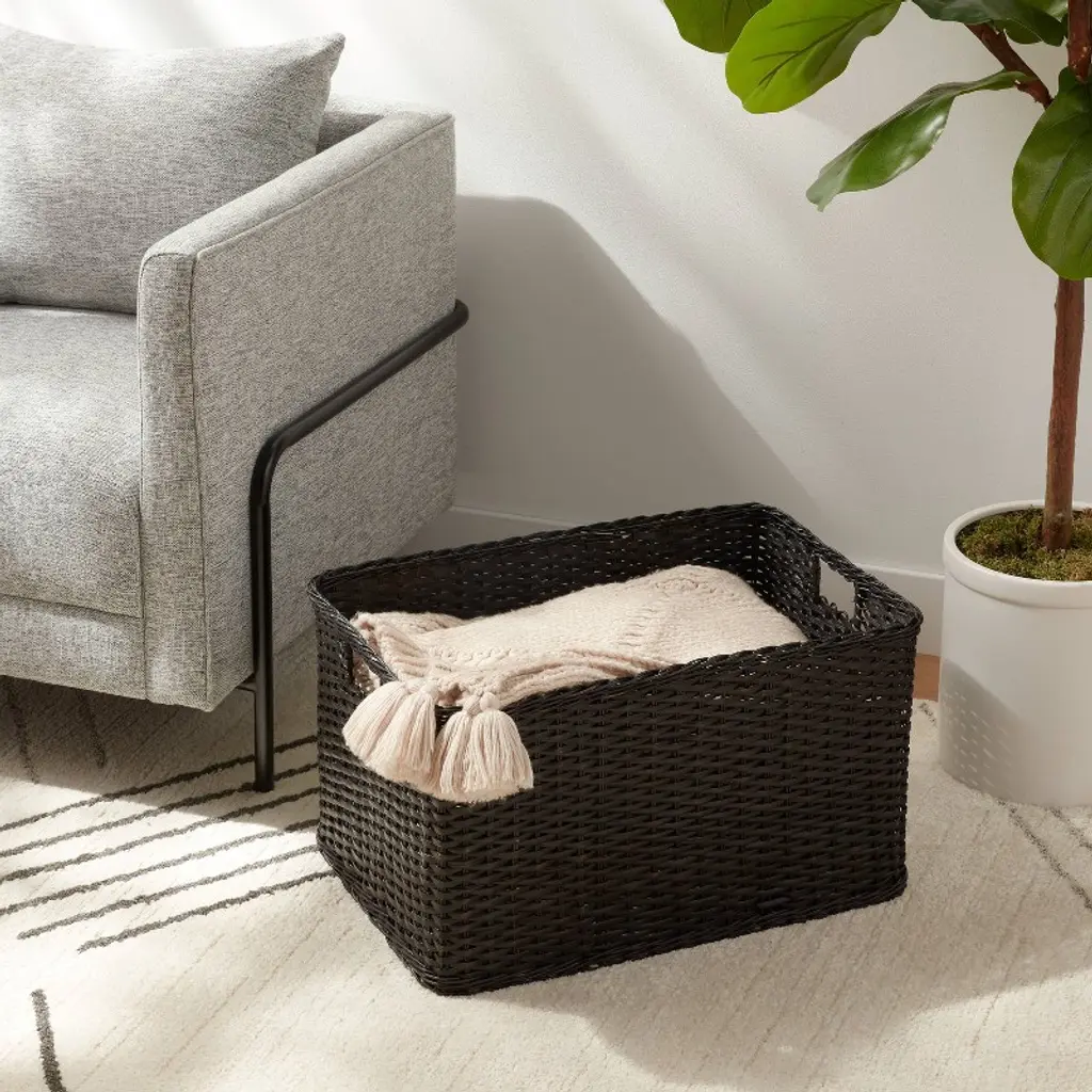 Xl Washed Woven Rattan Crate Black - Brightroom™: Decorative Storage Basket, Rectangle, Air Dry, 22"x15"x13.25"