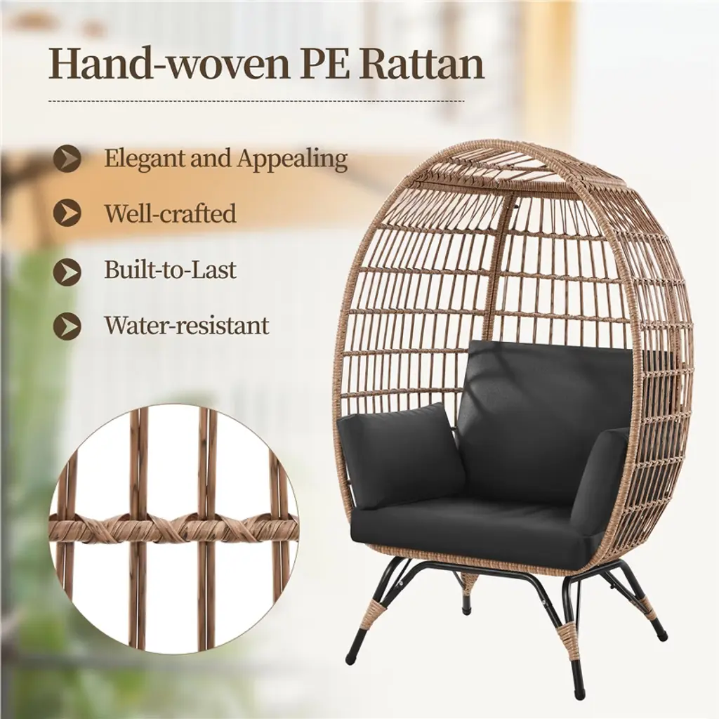 Yaheetech Outdoor Wicker Egg Basket Lounge Chair, Black