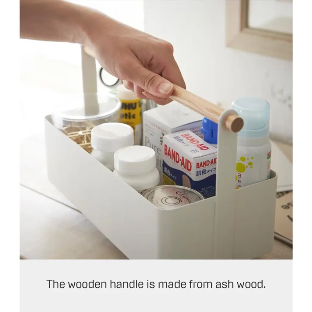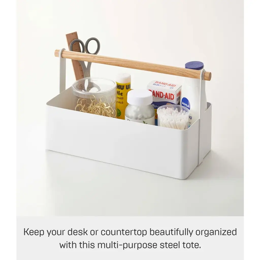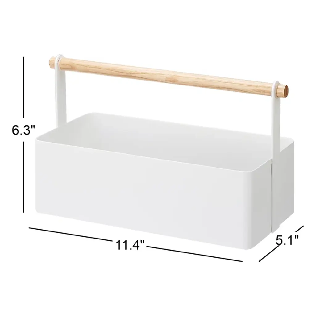Yamazaki Home Tosca Storage Basket - Wood Handle Organizer - Steel + Wood