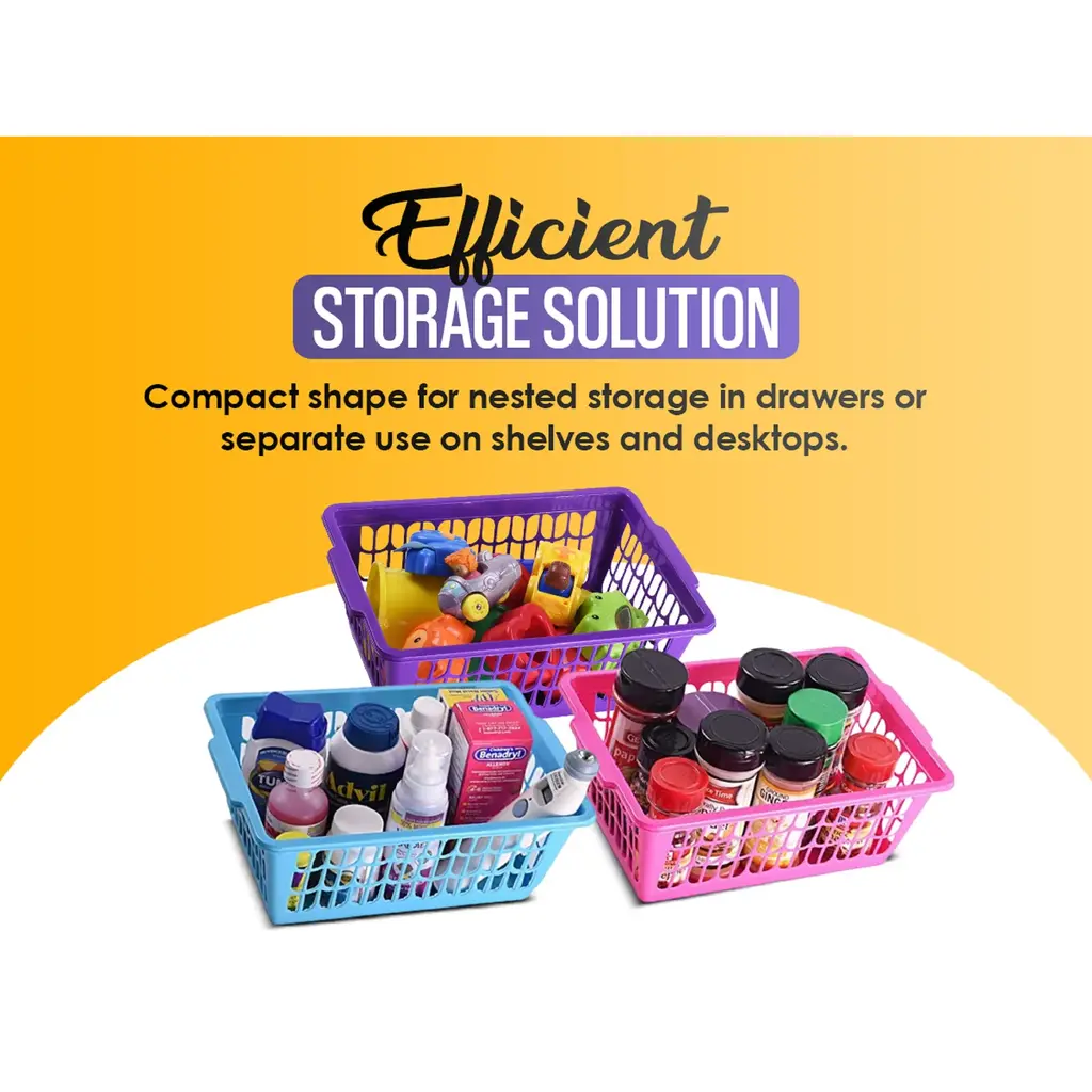 Organize all the commonly-used stuff around your home with this large rectangular plastic storage basketKeep Supplies ContainedWhether you need to organize the kitchen pantry, bathroom shelves, closet, or kids room, this plastic basket expedites the process to keep everything organized and easy to access. This basket is solidly made to contain items and heavy objects from the kitchen pantry, shelves, bedroom, closet, shelves, and other areas around your house without acting flimsy or wobbly. Featuring vented holes for airflow, it is made of BPA-free plastic material and withstands common tear and wear for long-term durability.Attractive Colors to Choose FromStorage baskets built with personality and style in mind. We offer these trays in eight vivid colors to match your living settings:- Blue- Green- Gray- Ivory- Pink- Purple- White