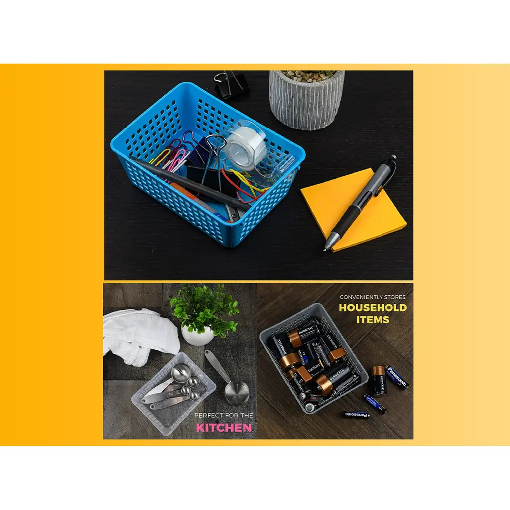 Organize all the commonly-used stuff around your home with this large rectangular plastic storage basketKeep Supplies ContainedWhether you need to organize the kitchen pantry, bathroom shelves, closet, or kids room, this plastic basket expedites the process to keep everything organized and easy to access. This basket is solidly made to contain items and heavy objects from the kitchen pantry, shelves, bedroom, closet, shelves, and other areas around your house without acting flimsy or wobbly. Featuring vented holes for airflow, it is made of BPA-free plastic material and withstands common tear and wear for long-term durability.Attractive Colors to Choose FromStorage baskets built with personality and style in mind. We offer these trays in eight vivid colors to match your living settings:- Blue- Green- Gray- Ivory- Pink- Purple- White