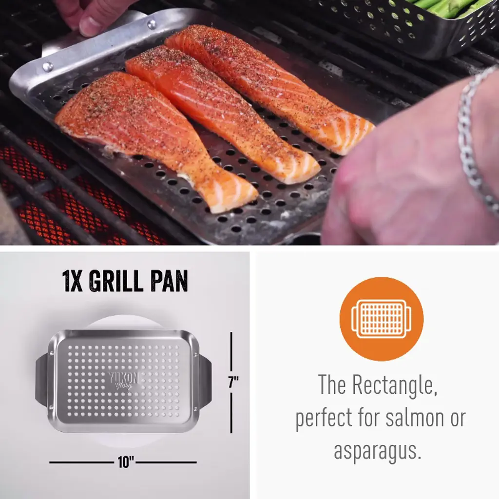 Yukon Glory Set Of 3 Professional Barbecue Mini Grilling Basket Set, Heavy Duty Stainless Steel Perforated Grill Baskets
