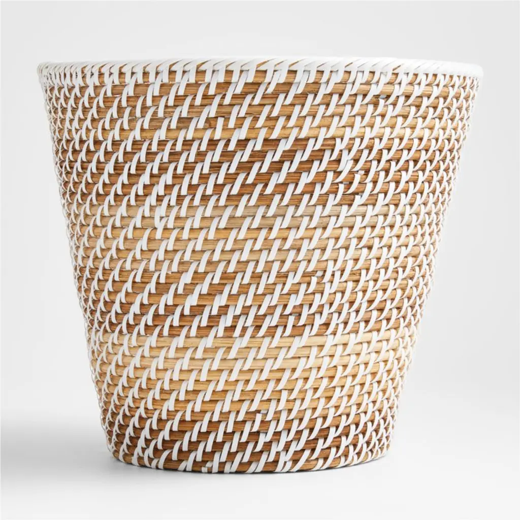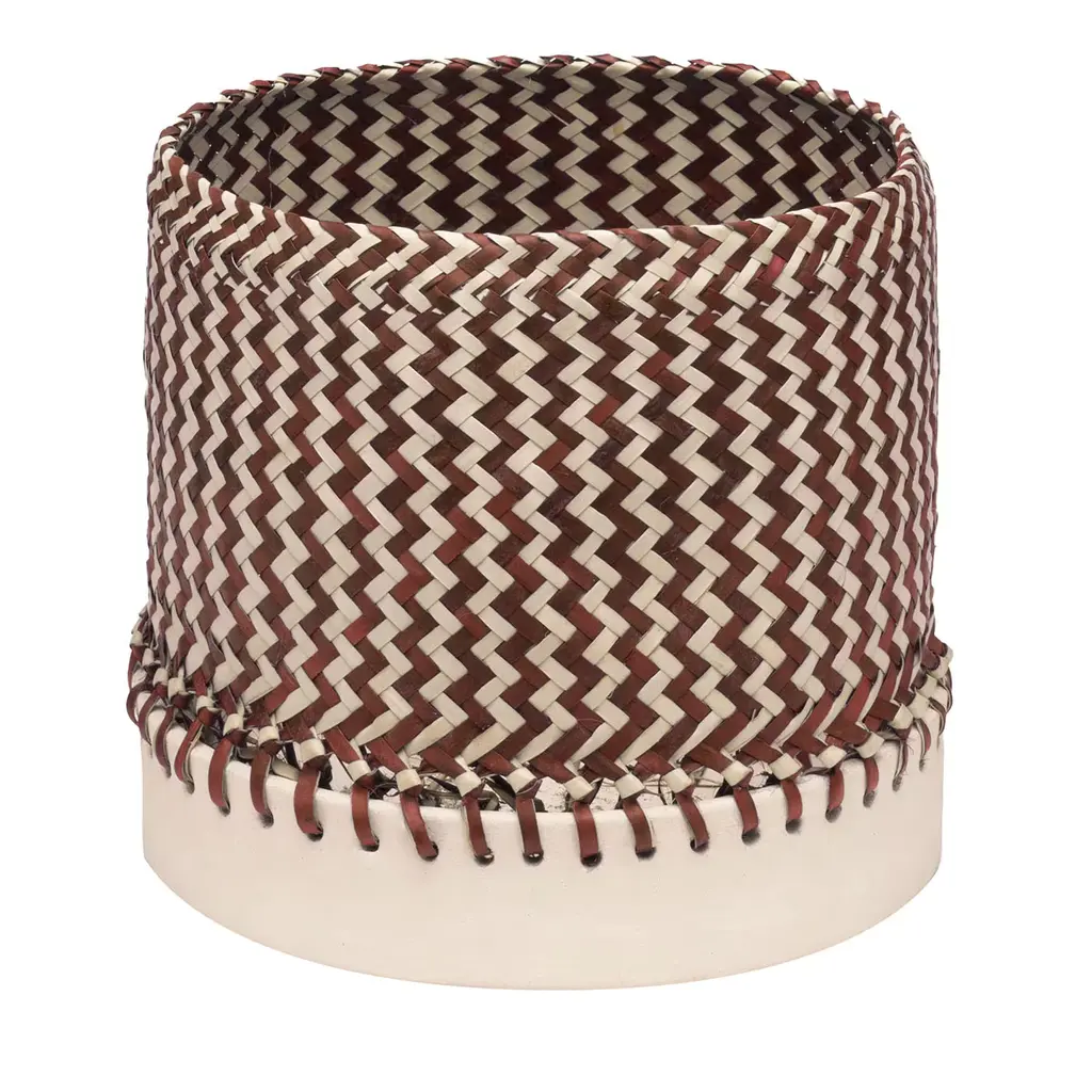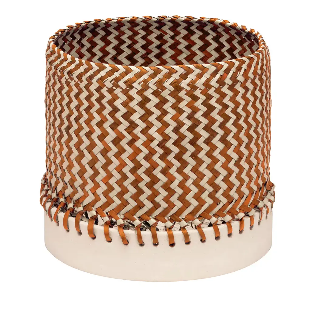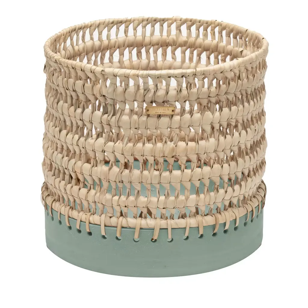 Crafted by hand, the palm leaf woven baskets elegantly combine with refractory clay bases, resulting in a harmonious fusion of materials. This synergy has produced ten unique and vibrant versions, giving rise to ceramic baskets that transcend aesthetics to embrace functionality. The blend of materials offers diverse uses: perfect as plant containers, decorative pieces, bathroom organizers, captivating centerpieces, and versatile storage for various items. Each basket is accompanied by a box.