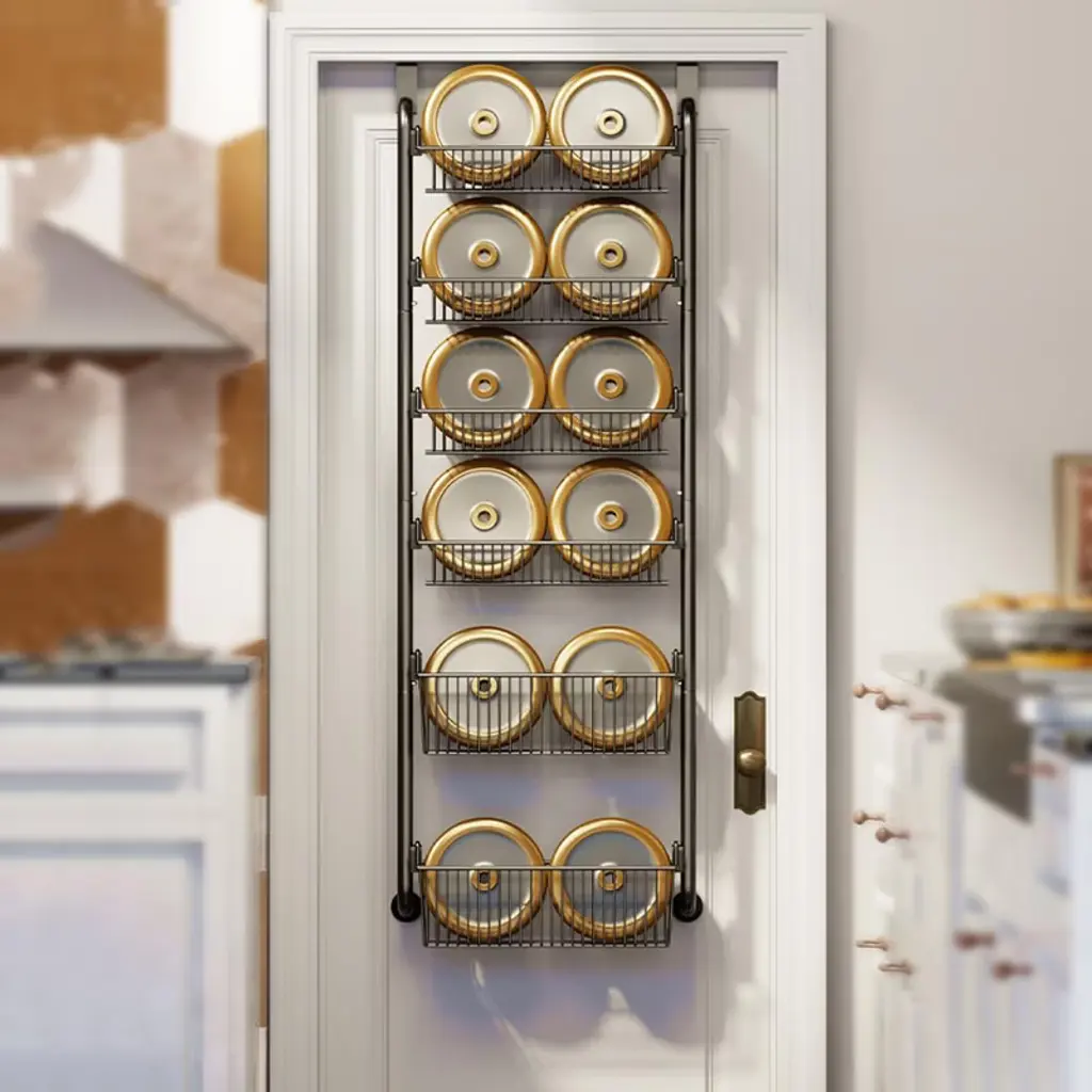 Zstar Over The Door Organizer, Over The Door Pantry Organizer Rack, Metal Over Door Hanging Organizer With Adjustable Baskets,6 Layers Black