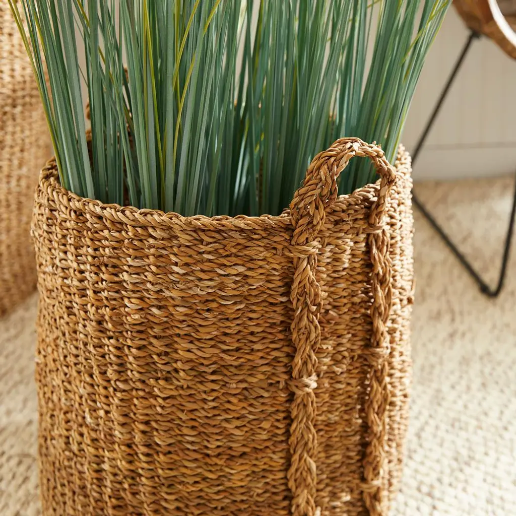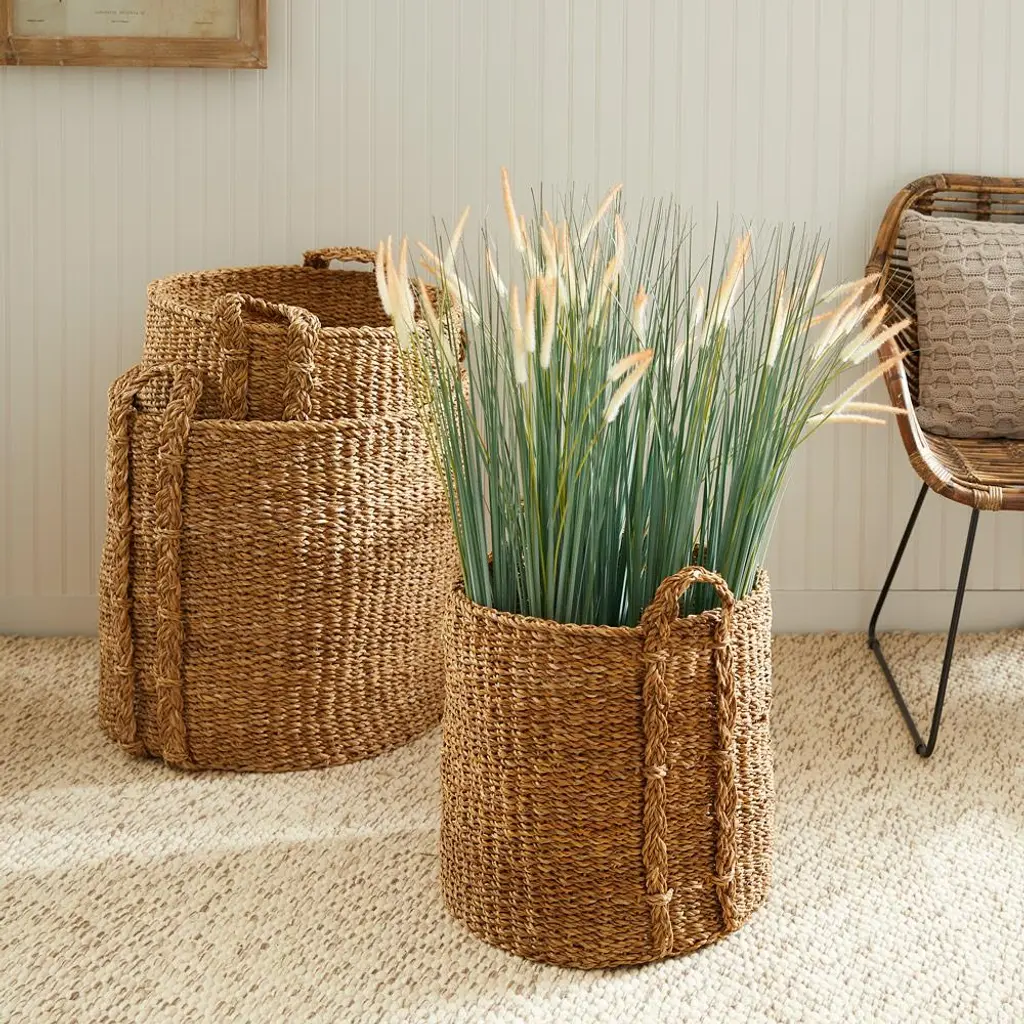 Zuri Coastal Beach Brown Woven Rattan Round Large Baskets - Set Of 3