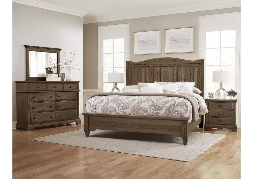 Heritage Sleigh Bed. Raised panels with plank board detail. A relaxed traditional style constructed of Solid Oak American-grown hardwood. Weight 385.000 lbs. (173.25kgs.)