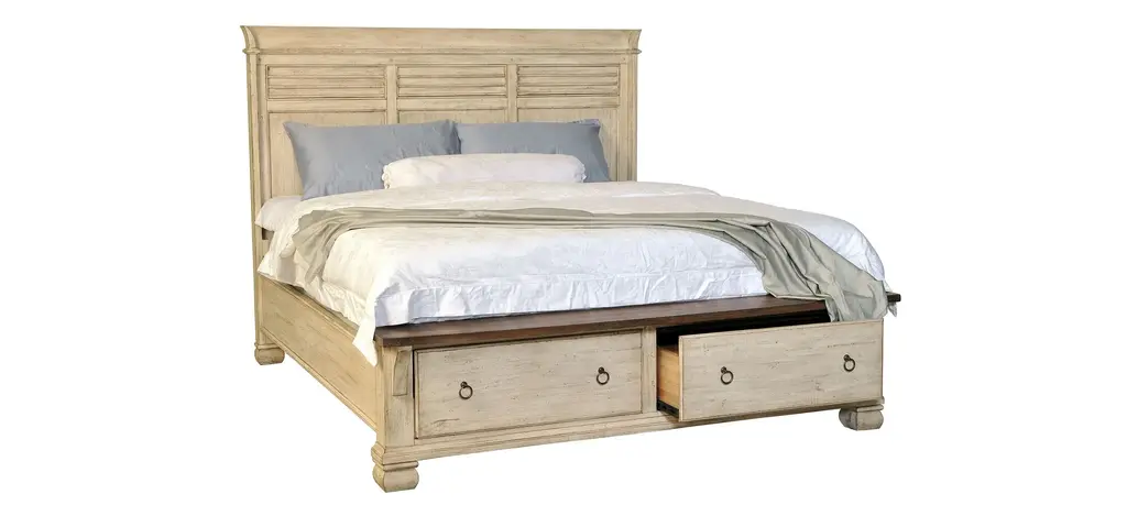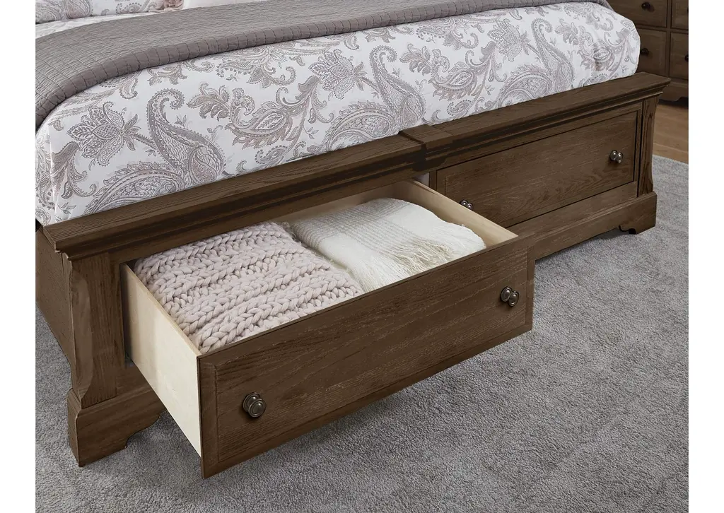 112 - Heritage-Cobblestone Oak King Sleigh Bed With Storage Footboard