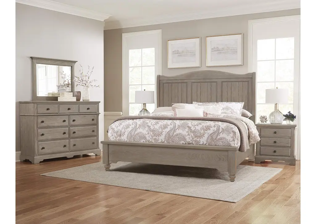 114 - Heritage-Greystone Queen Sleigh Bed With Storage Footboard