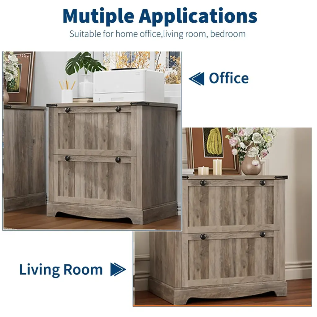 Merge rustic charm with modern organization in your home office with this farmhouse-style filing cabinet. Featuring imitation wood grain texture and chic metal accents, it adds warmth while keeping documents neatly stored.