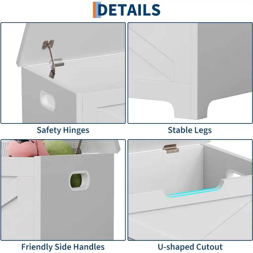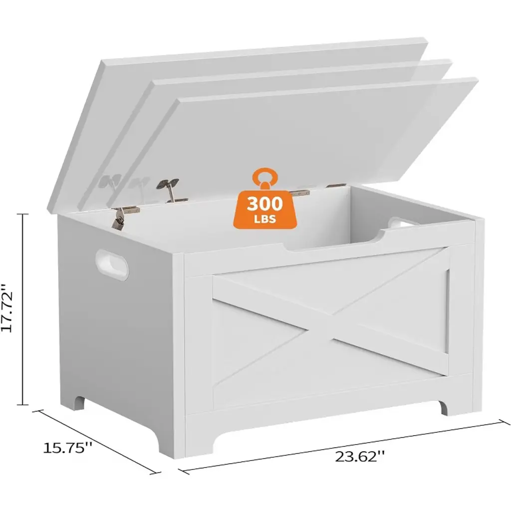 Generously accommodating toys, blankets, shoes, and more within its 23.62x15.75x17.72-inch dimensions, this sturdy storage bench keeps spaces tidy. Built with a robust frame supporting up to 300 lbs, it ensures lasting durability as seating or storage. Effortless 20-minute assembly comes with clear instructions. Family-friendly safety hinges prevent lid slamming while side handles enable secure relocation. Featuring a modern wooden design, it seamlessly functions as a toy chest, entryway bench, shoe organizer, or extra seating—perfect for bedrooms, living rooms, and playrooms.