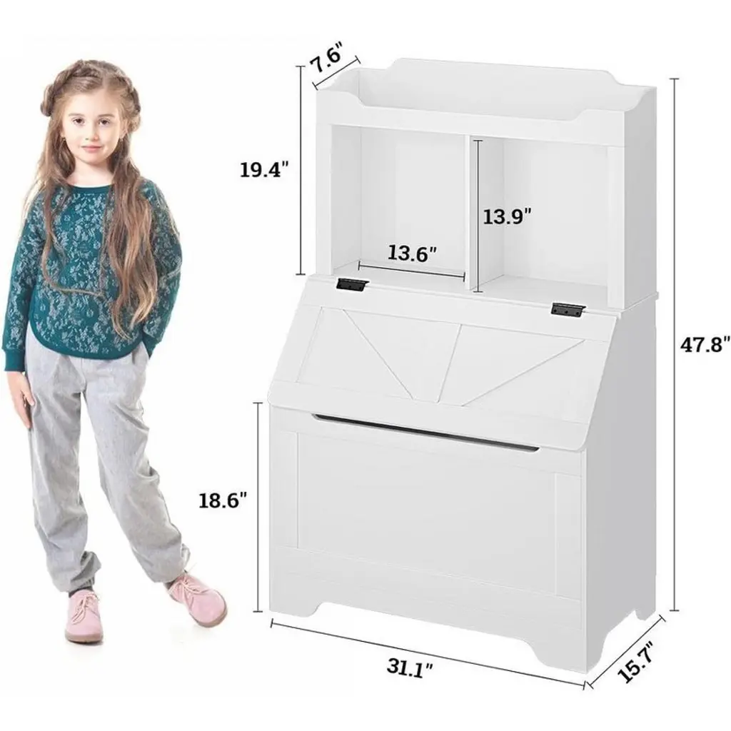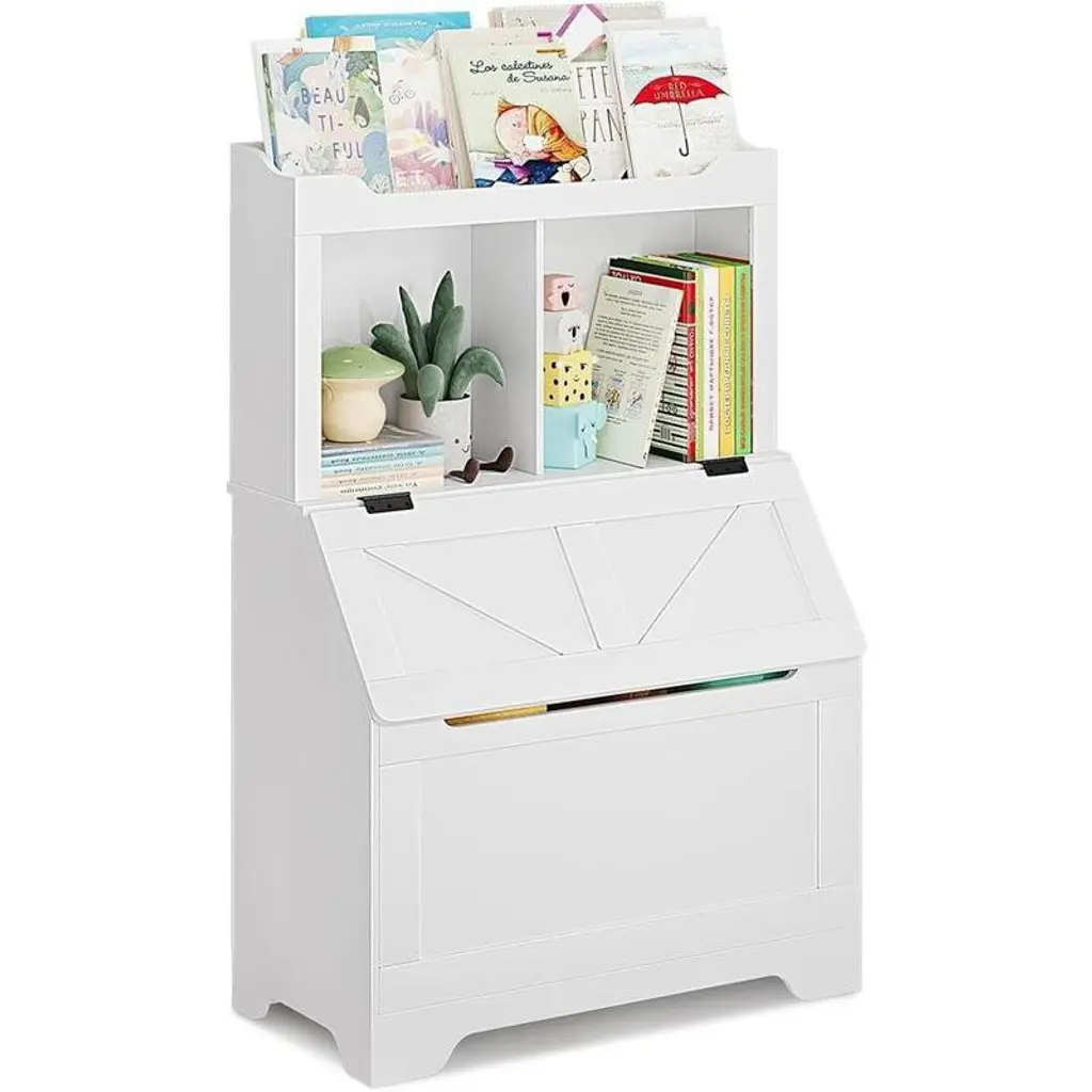 Spacious 3-tier Wooden Kids Bookcase and Toy Storage Organizer with Flip-Top Lid, Versatile Design for Playroom, Bedroom, Nursery, and Kindergarten - Child-Friendly Toy Chest Organizer