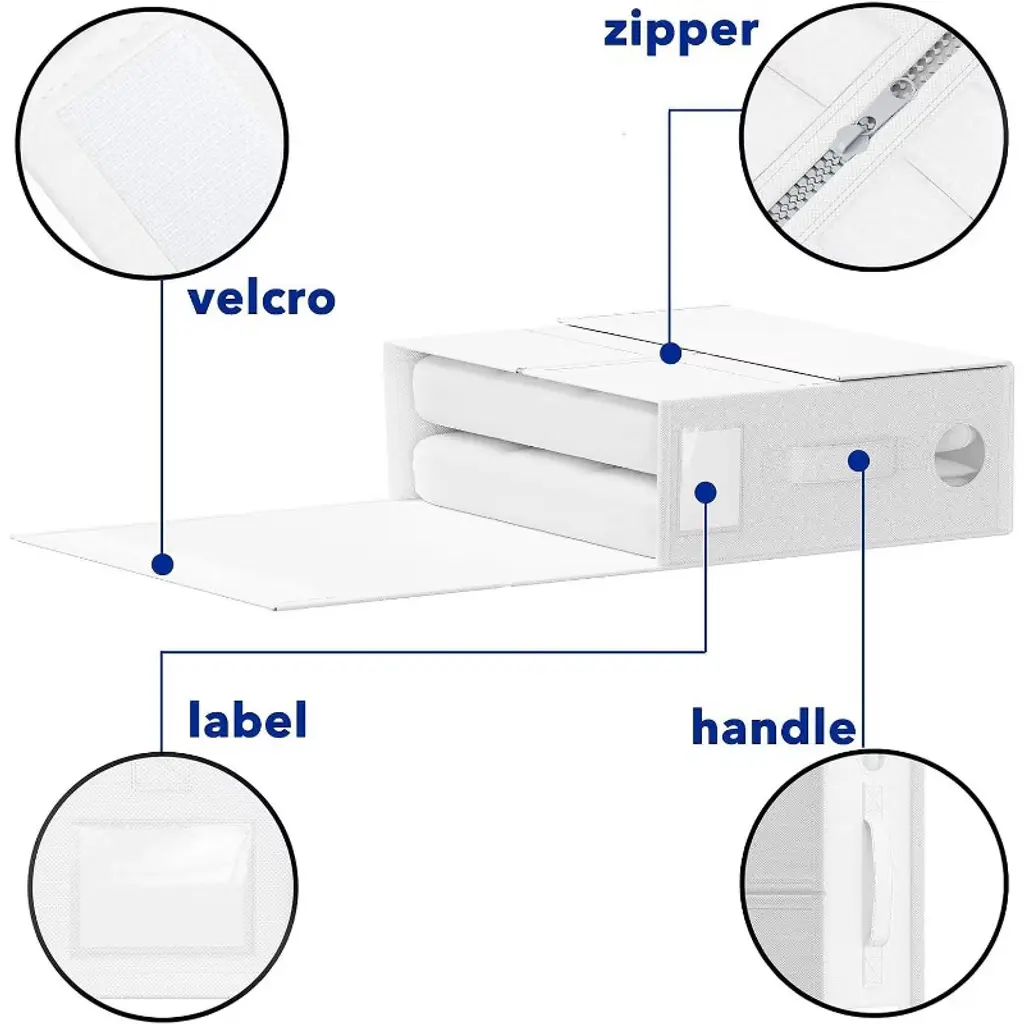 Introducing the elegant Bed Sheet Organizer and Storage Box in white with a stylish circle window design. This folding container is perfect for neatly organizing your bedding essentials, including sheets, duvet covers, and pillows. Keep your linen closet tidy and visually appealing with this practical and stylish solution.